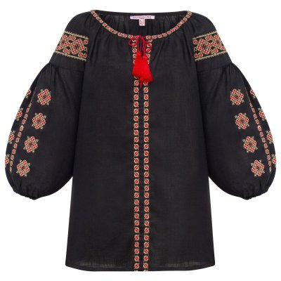 Вишиванка жіноча Слобожанка - Всеслава (чорна)Вишиванка виготовлена з натурального 100% льону та прикрашена делікатною традиційною вишивкою хрестиком. Загальна інформація: Тканина: 100% - льон Догляд: Прання: