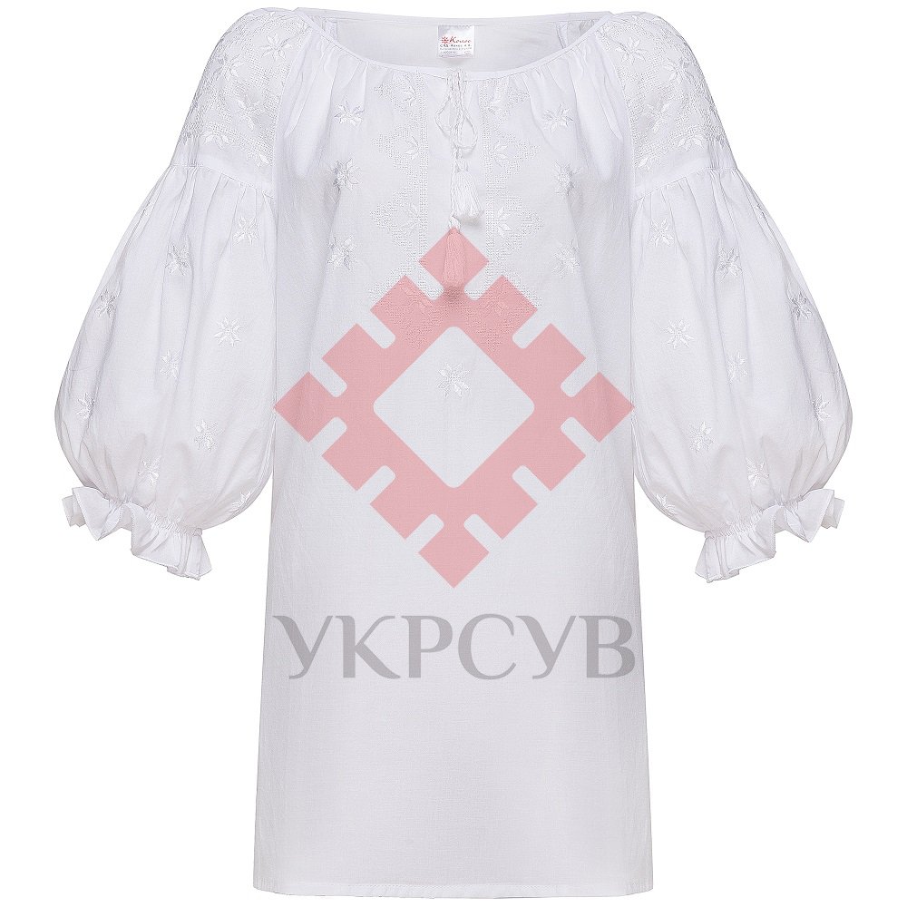 Вишиванка жіноча Колос - Зірочка, короткий рукавВишиванка білого кольору: це символ чистоти і життєвої енергії. За стародавнім повір'ям біла вишиванка дарує своєму власникові душевну рівновагу і здоров'я. Колір вишивки – білий: вишивка білим по білому виглядає ніжно і нарядно. Біла вишивка вважалася найскладнішою, тому такий одяг одягали тільки в особливих випадках. Характер орнаменту: геометричний Символика: Материнський символ (8-кінцева зірка) - підкреслює велич жінки, оберігає її жіночу силу, допомагає у всьому, що пов'язано з продовженням роду. Загальна інформація Тканина: батист Догляд: Прання: