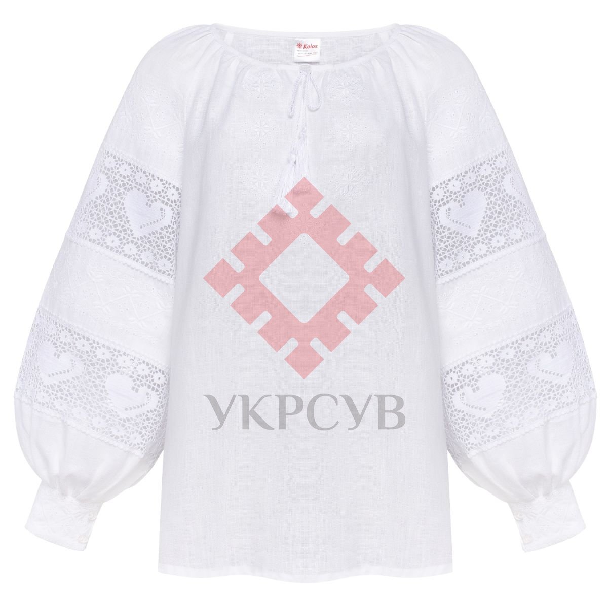 Блуза жіночка вишиванка "Колос" - Згарда (біла)Вишиванка виготовлена з натурального льону та прикрашена традиційною вишивкою в тон тканині та ніжною мережкою. Загальна інформація Тканина: льон - 100% Догляд: Прання: