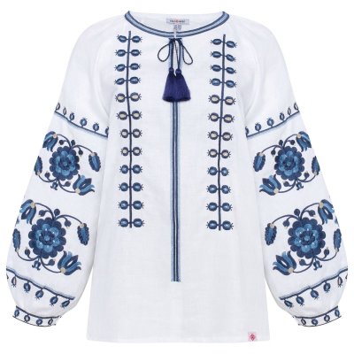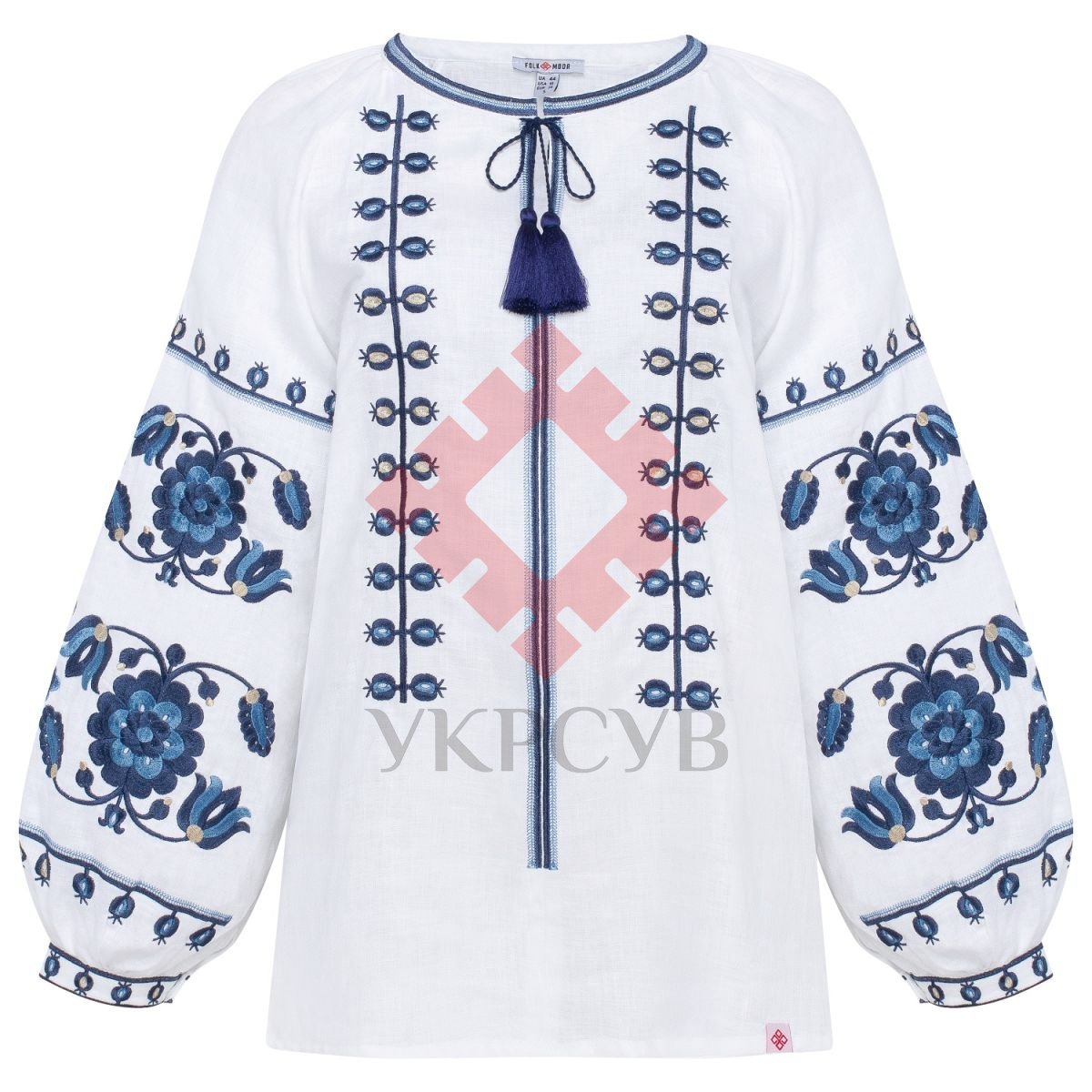 Вишиванка жіноча Фолк Мода (5021)Вишиванка виготовлена з натурального 100% льону білого кольору. Оригінальна вишивка гладдю прикрашає вишиванку спереду та на рукавах. Загальна інформація: Тканина: 100% - льон Догляд: Прання: