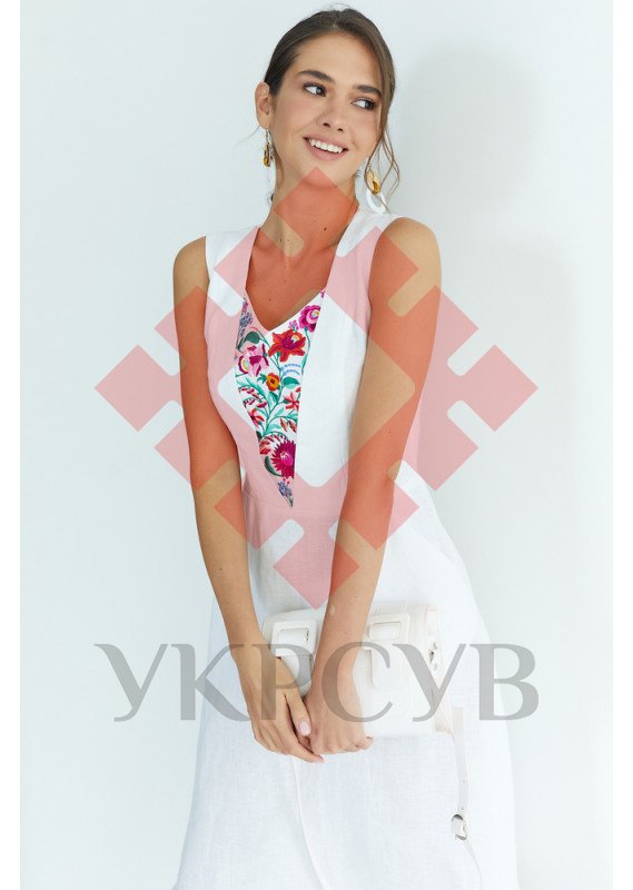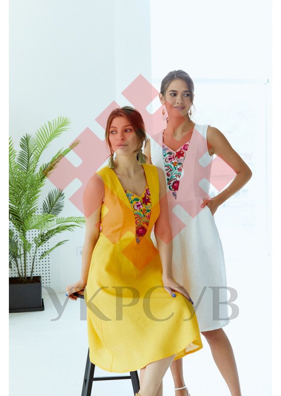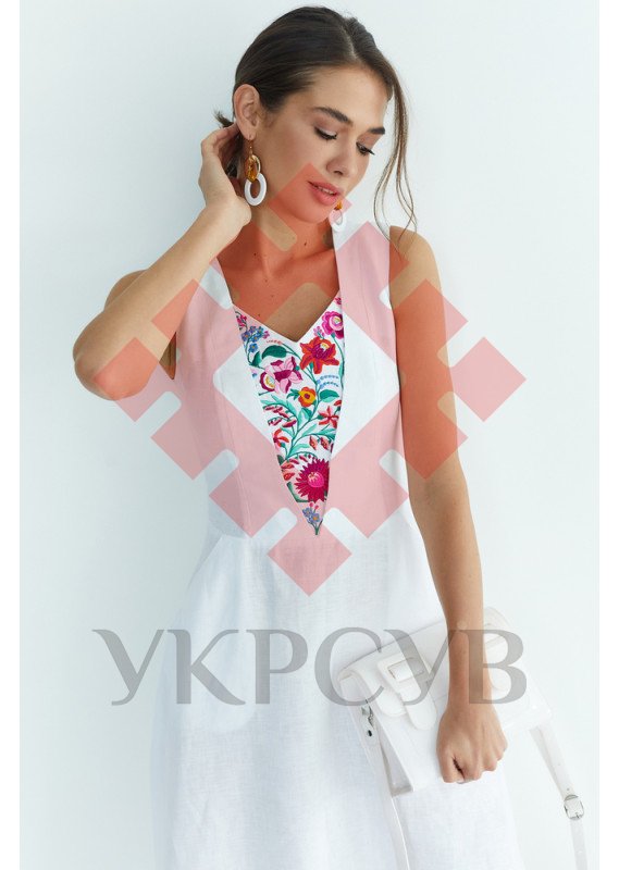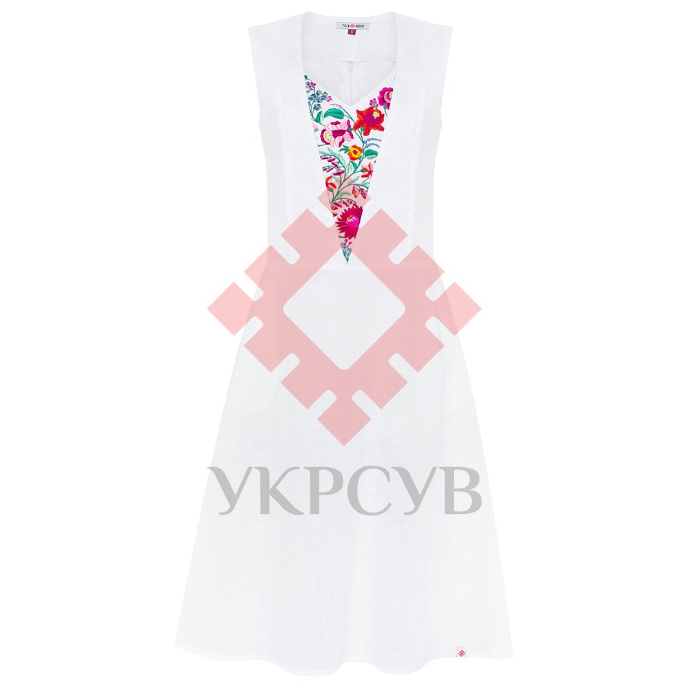 Сукня вишиванка Фолк мода (5033)Білосніжна лляна сукня від українського виробника буде вдалим доповненням вашого гардеробу. Таку сукню можна одягати як для святкових подій, так і в буденні дні. Легка, приємна на дотик, а головне натуральна тканина, не парить та пропускає повітря. Кишені в бокових швах роблять сукню більш практичною. Передня частина сукні прикрашена квітковою вишивкою, виконаною гладдю різнокольоровими нитками. Зважаючи на світові тенденції, в такій сукні Ви, однозначно, будете в тренді.Загальна інформація Тканина: льон Догляд: Прання:
