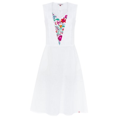 Сукня вишиванка Фолк мода (5033)Білосніжна лляна сукня від українського виробника буде вдалим доповненням вашого гардеробу. Таку сукню можна одягати як для святкових подій, так і в буденні дні. Легка, приємна на дотик, а головне натуральна тканина, не парить та пропускає повітря. Кишені в бокових швах роблять сукню більш практичною. Передня частина сукні прикрашена квітковою вишивкою, виконаною гладдю різнокольоровими нитками. Зважаючи на світові тенденції, в такій сукні Ви, однозначно, будете в тренді.Загальна інформація Тканина: льон Догляд: Прання: