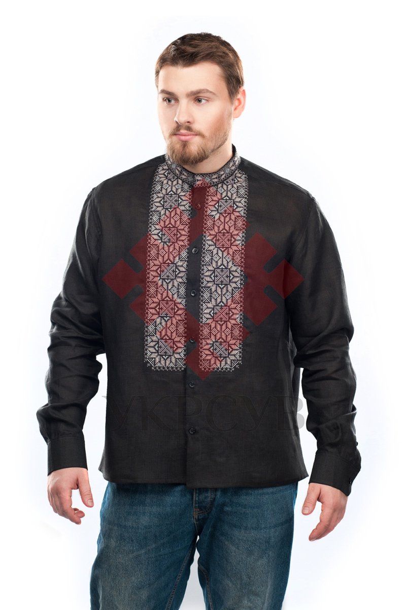 Вишиванка чоловіча Слобожанка - Всеслав (чорний льон) 50 (17404)