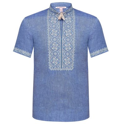 Вишиванка чоловіча Слобожанка - Лучеслав к/р (блакитний льон) 50 (16897)