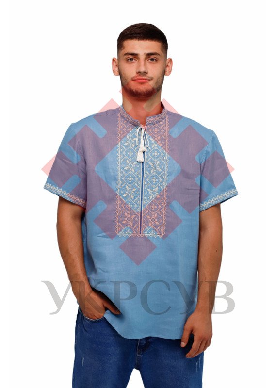 Вишиванка чоловіча Слобожанка - Лучеслав к/р (блакитний льон) 56 (16900)