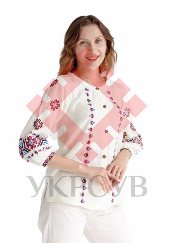 Вишиванка жіноча Фолк Мода (1302)Вишиванка виготовлена з натурального 100% льону білого кольору. Традиційна вишивка гладдю прикрашає вишиванку спереду та на рукавах. Загальна інформація: Тканина: 100% - льон Догляд: Прання: