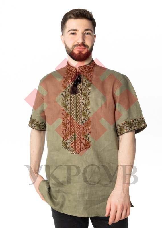 Теніска-вишиванка чоловіча Слобожанка - Дуб, хакіСорочка пошита из високоякісного льону (100%) та вишита хрестиком. Сучасна і стильна модель лаконічною вишивкою. Фасон цієї моделі дозволить вам відчути себе впевнено та зручно.Загальна інформація Тканина: льон Догляд: Прання: