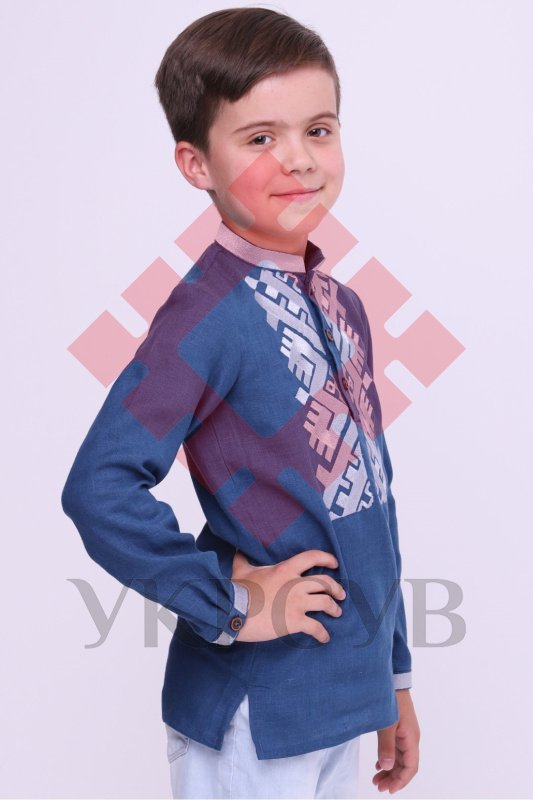 Сорочка вишиванка для хлопчика Фолк мода (6001)Дитяча вишиванка у синьому кольорі поєднала в собі давні традиції, сучасні тенденції та комфорт. Натуральна лляна тканина та акуратна машинна вишивка гладдю - визначає високу якість виробу. Загальна інформація Тканина: 100% льон Догляд: Прання: