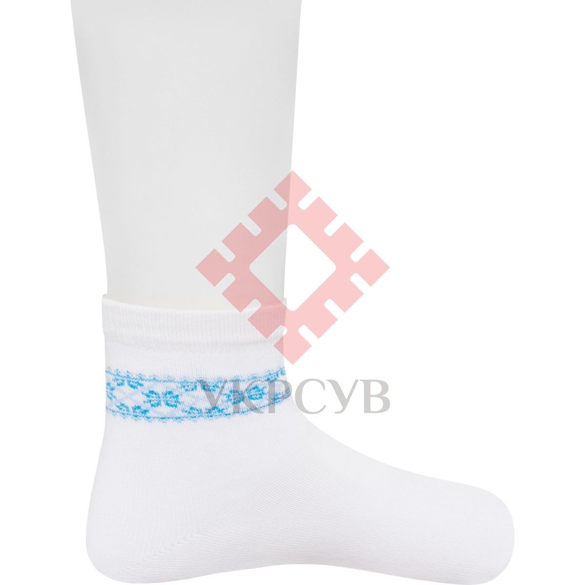 Шкарпетки з вишивкою дитячі (016), білі з блакитним 36-38