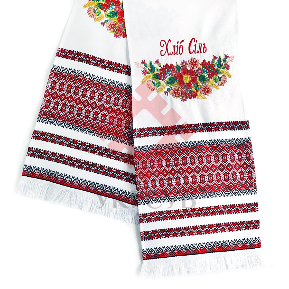 25% бавовна, 22% акрил Тип рушника: Обрядовий. На рушнику присутня вишивка: квіти виконані у техніці "хрестик", слова "Хліб сіль" - гладдю. Розмір: довжина - 185 см, ширина - 33 см |