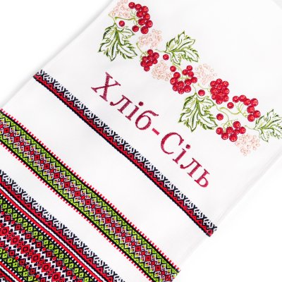 21% бавовна, 35% акрил Тип рушника: Обрядовий. На рушнику присутня вишивка калини, що виконана гладдю (машинна вишивка). Калина - дерево українського роду, що символізує вірність, відродження, надію, а ще – це символ жіночої вроди, сили та здоров’я. На теренах України гілку калини потайки дарувала дівчина майбутньому нареченому на знак згоди вийти заміж. У давні часи калину пов’язували із створенням Всесвіту, з вогняною трійцею: Сонцем, Місяцем та Зорями. Тому й ім’я її походить від старослов’янської назви Сонця – “Коло”. А через свій червоний колір ягід калина стала ще й символом крові та безсмертного роду. Розмір: довжина - 190 см, ширина - 33 см |