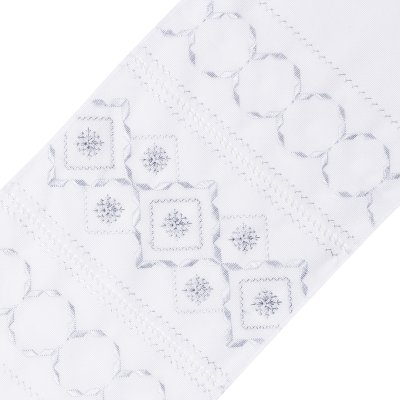 Вишитий рушник ручної роботи. Тканина: 100% бавовна (канва)Тип рушника: Обрядовий Малюнок рушника - вишитий стовпчиком та хрестиком, з елементами мережки. Кольори вишивки: срібний. Розмір: довжина - 180см, ширина - 34см Увага !!!! Дана продукція виготовляється в ручну, тому може мати невідчутні відмінності від зазначених розмірів. |