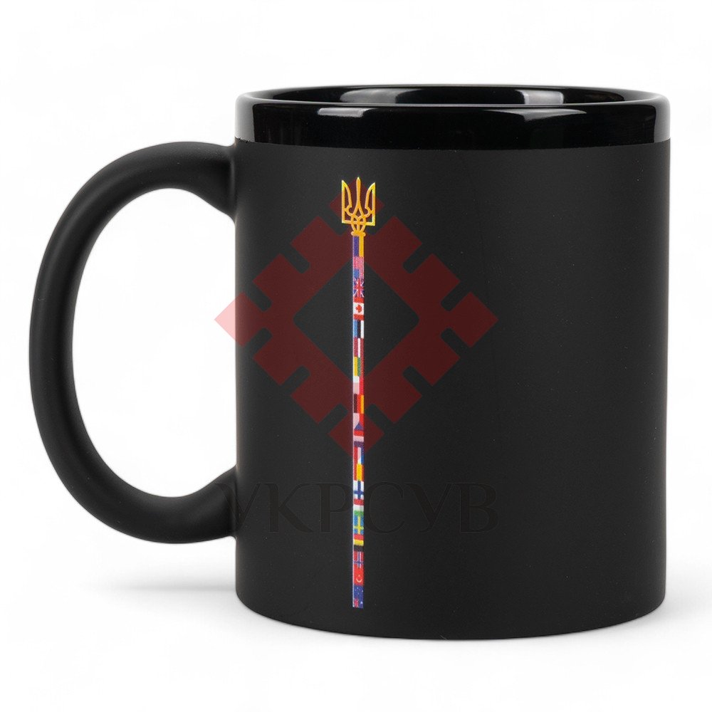 Горнятко Тризуб прапори, чорне софттач з чорним обідком 340 мл (33916)