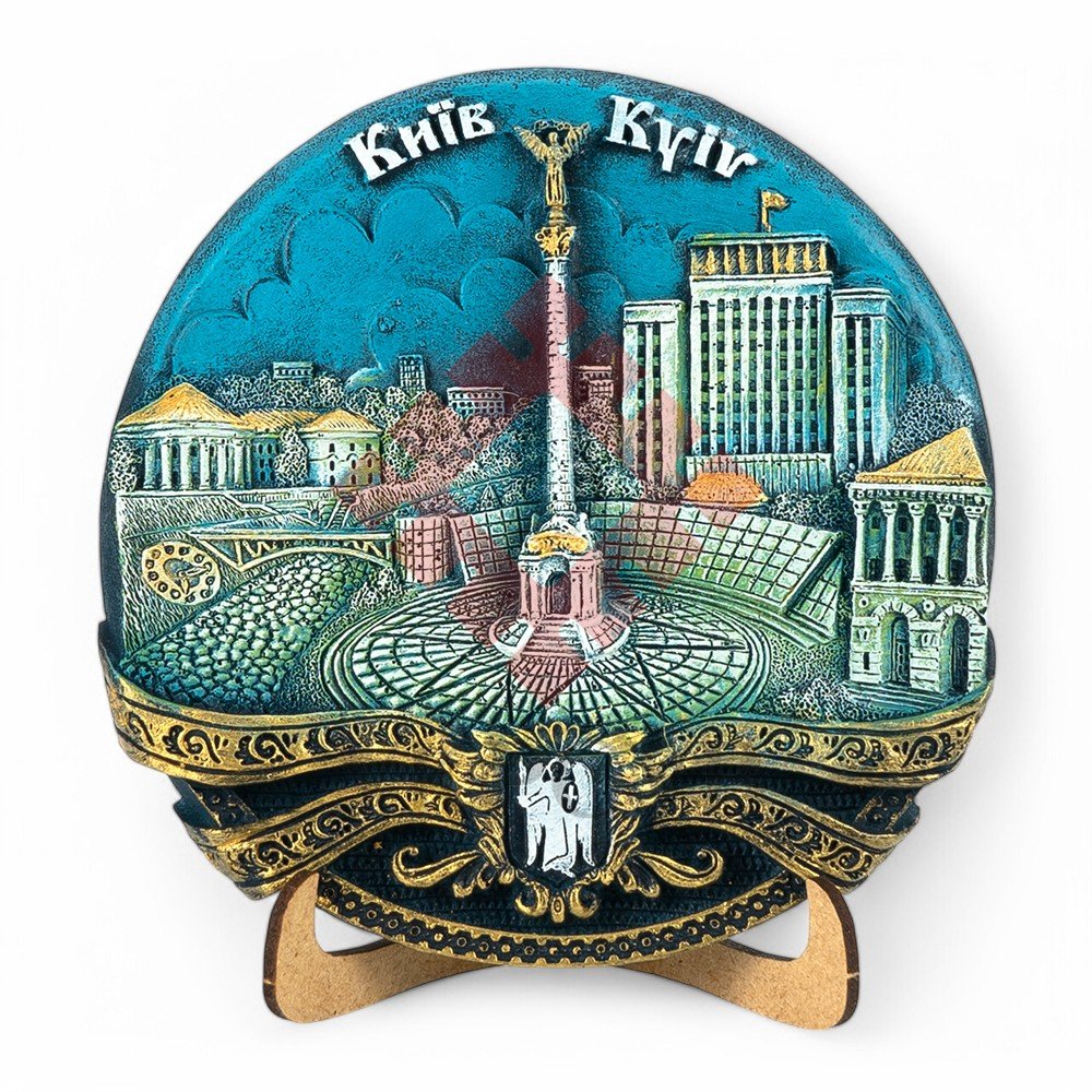 Керамічна тарілка-панно - Майдан Незалежності (патіна) 12 см (36235)