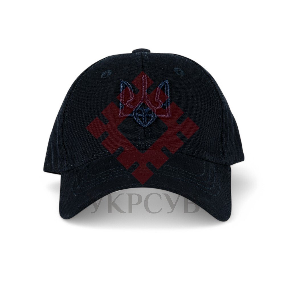 Бейсболка виготовлена з щільної тканини оливкового кольору.