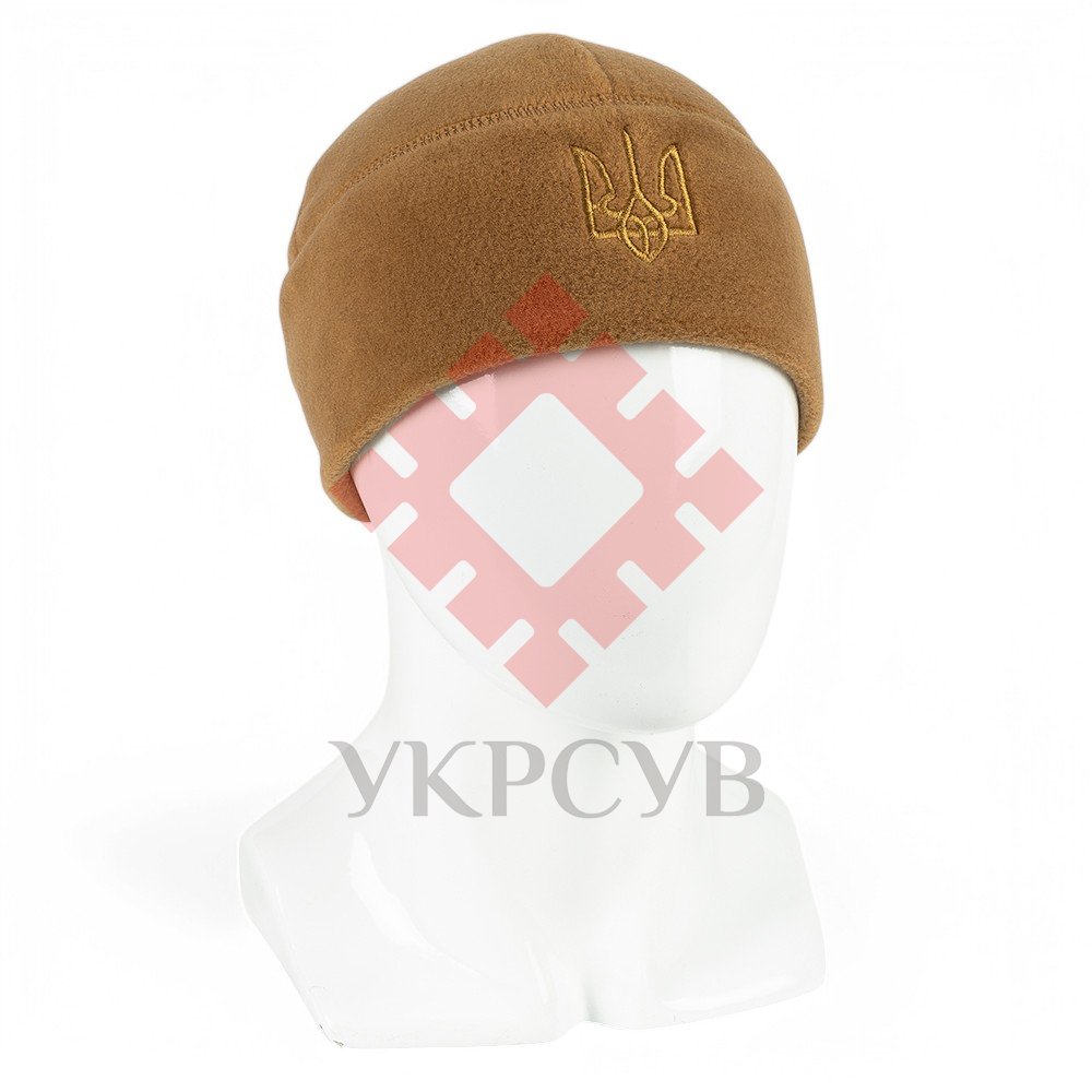 Шапка виготовлена з плотного, м'якого флісу кольору койот.