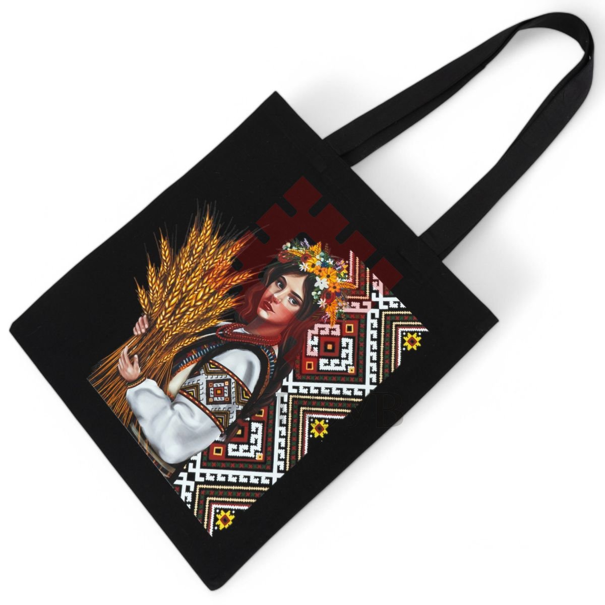 Сумка бавовняна "Дівчина з колосками-вишивка" чорна (33776)