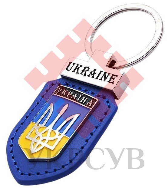 Брелок екошкіра – Герб "Ukraine" (синій)