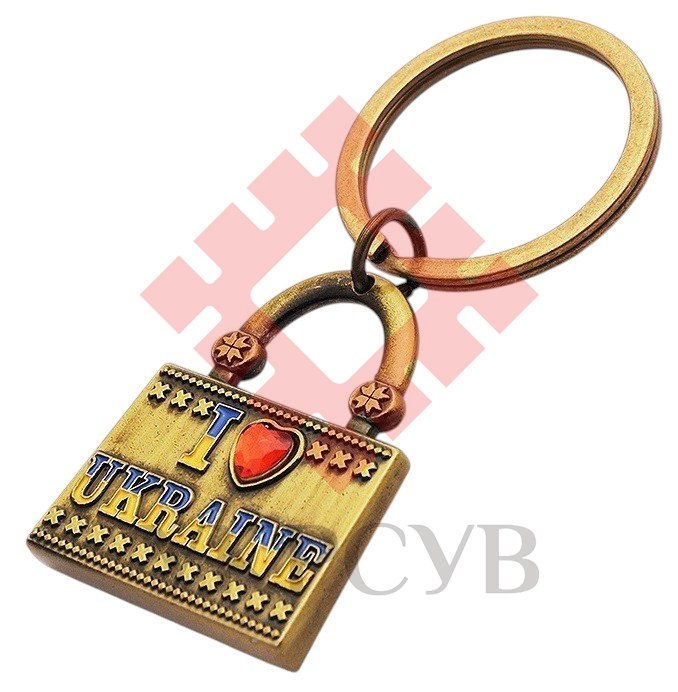 Брелок металевий – Сумка "I love Ukraine" (золото) (33750)