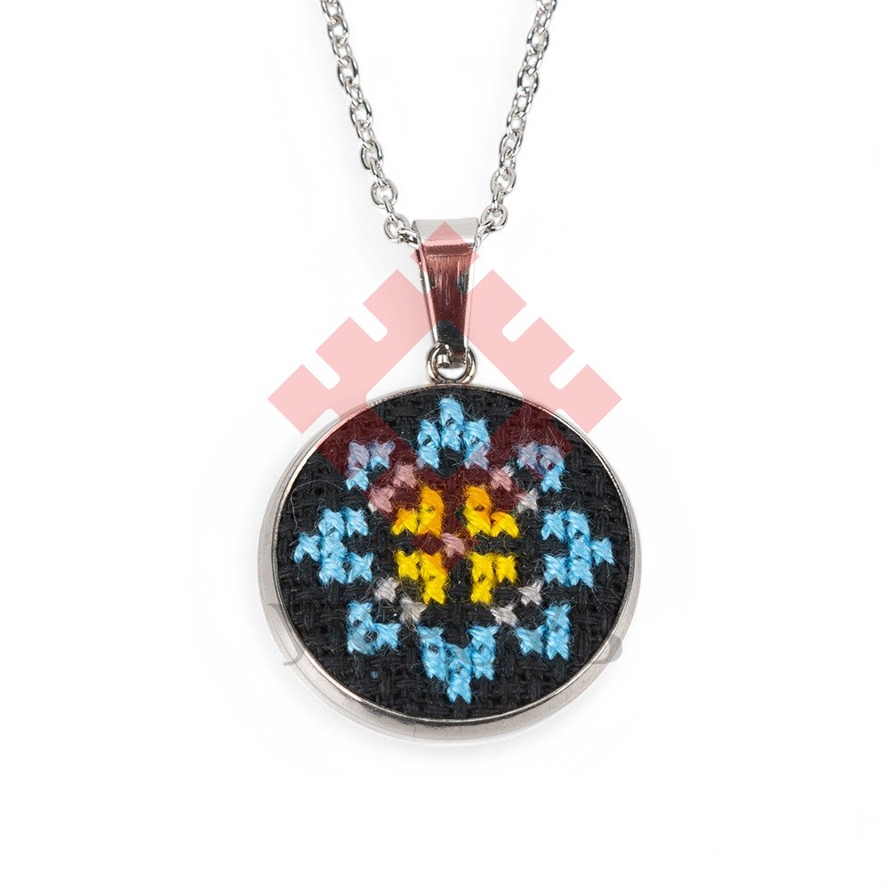 Кулон з ланцюжком з ручною вишивкоюБагатогранний український стиль, нескінченне поєднання кольорів і схем, ювелірна вишивка хрестиком.