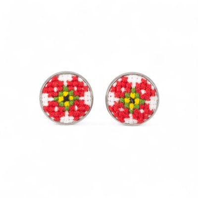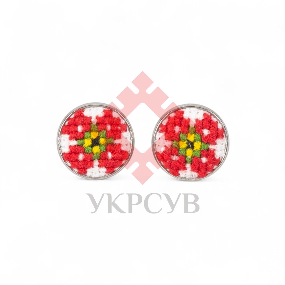 Сережки-гвіздочки з ручною вишивкоюБагатогранний український стиль, нескінченне поєднання кольорів і схем, ювелірна вишивка хрестиком.
