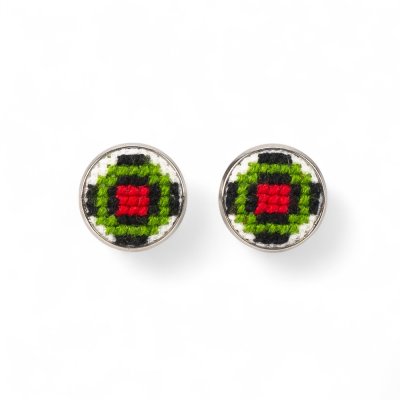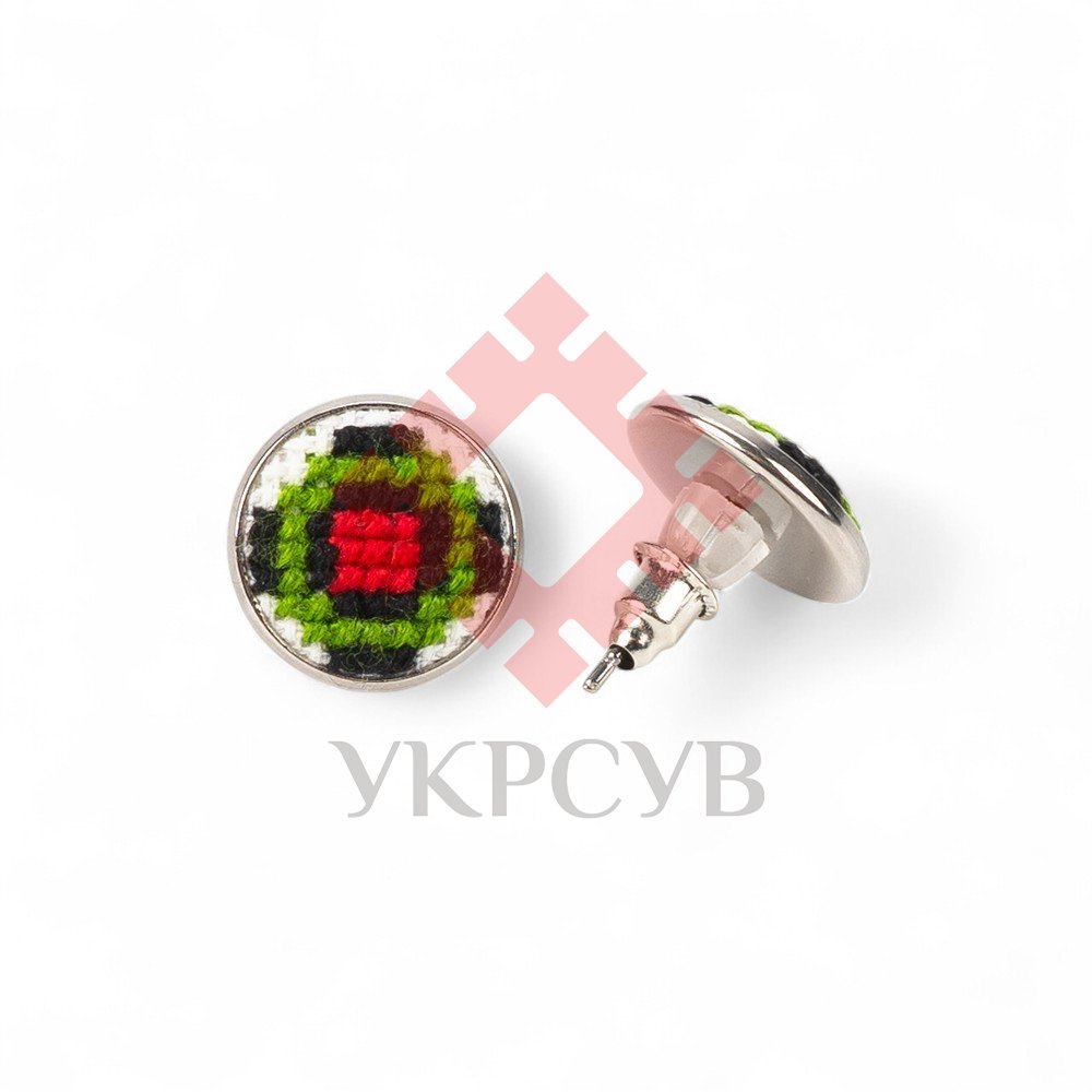Сережки-гвіздочки з ручною вишивкоюБагатогранний український стиль, нескінченне поєднання кольорів і схем, ювелірна вишивка хрестиком.