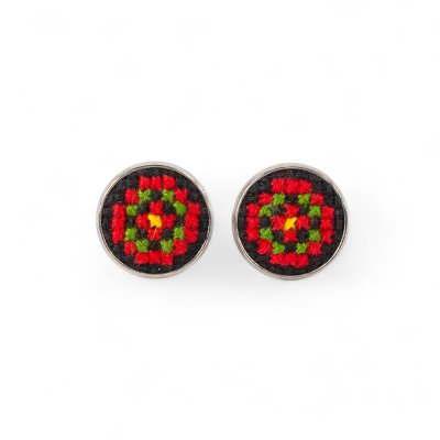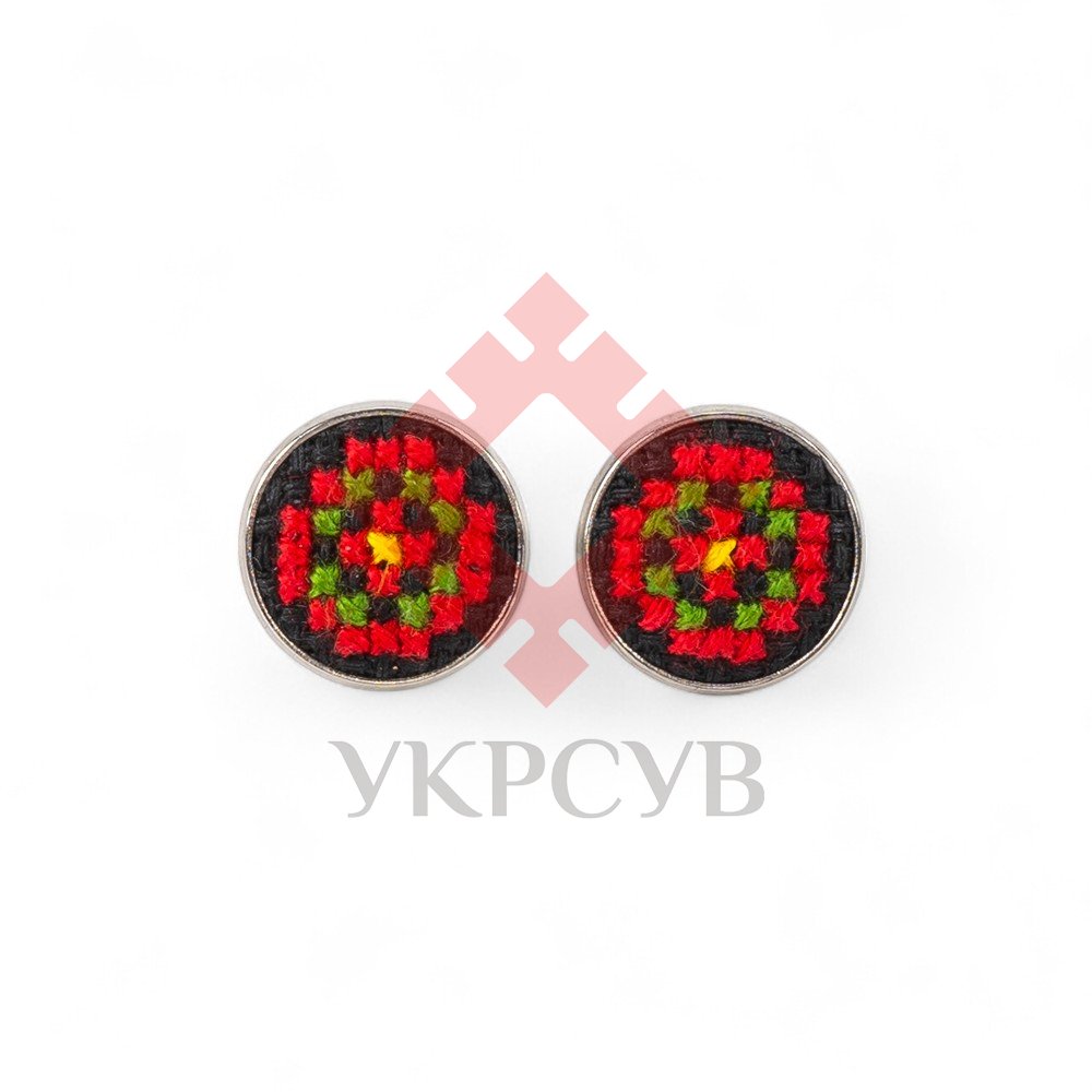 Сережки-гвіздочки з ручною вишивкоюБагатогранний український стиль, нескінченне поєднання кольорів і схем, ювелірна вишивка хрестиком.