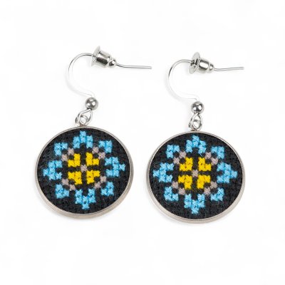Сережки класичні з ручною вишивкоюБагатогранний український стиль, нескінченне поєднання кольорів і схем, ювелірна вишивка хрестиком.