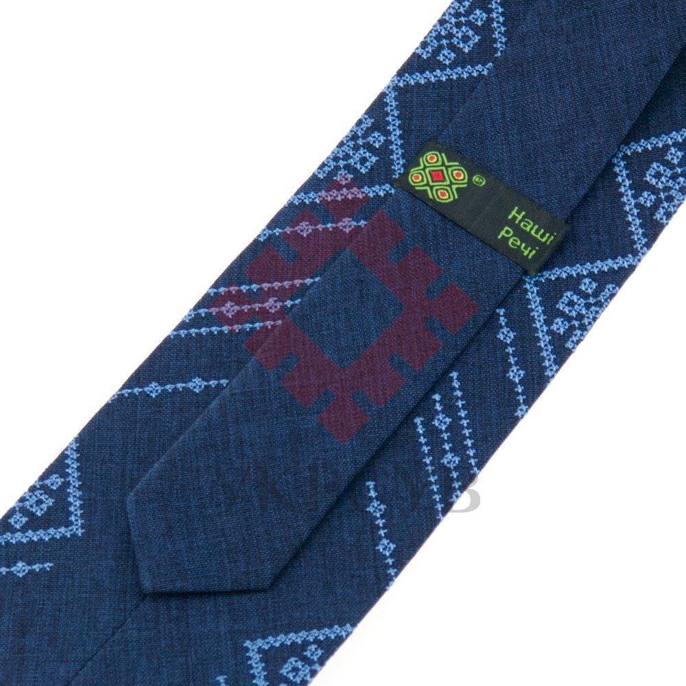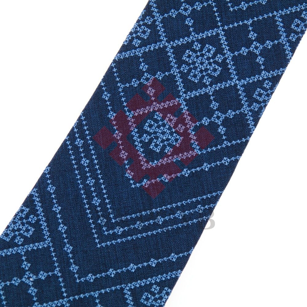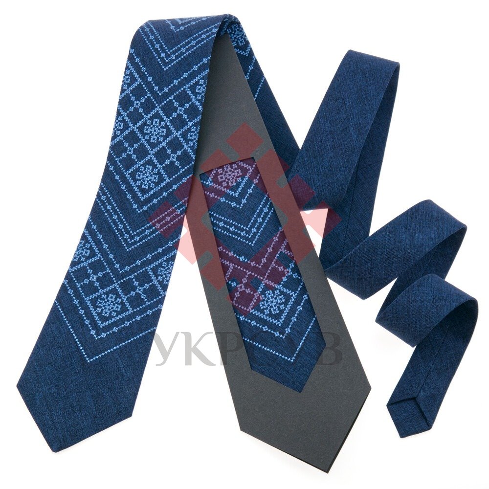 Вишита краватка – це унікальний подарунок для керівника, друга чи колеги по роботі. Вона є необхідним аксесуаром для ділової людини. Краватка виготовлена з костюмної тканини синього кольору, класичного крою. Довжина виробу – 145 см.