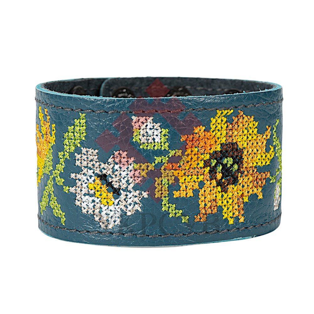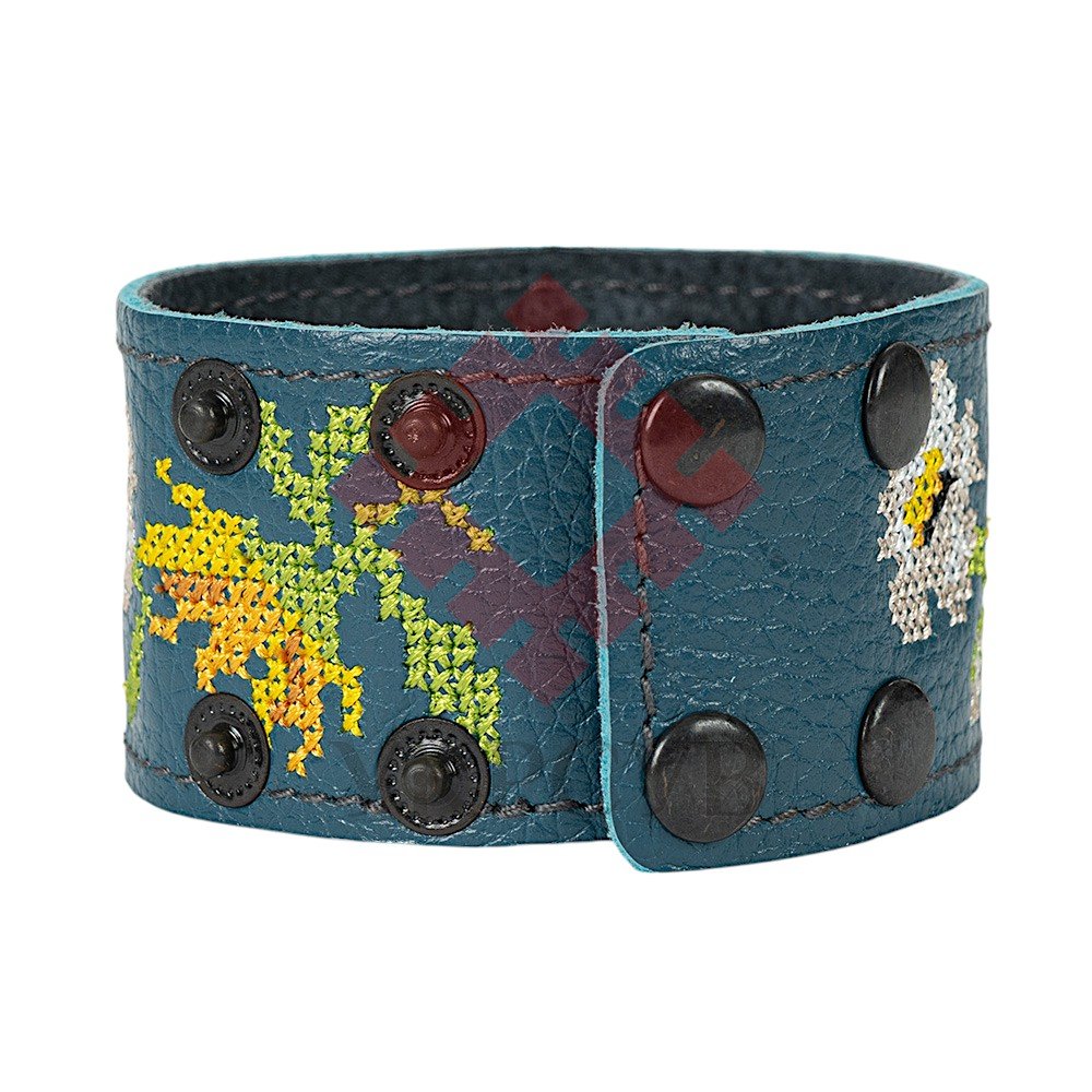 Браслет "Вишивка" (40 мм, синій, №04)Представляємо елегантний та стильний браслет "Вишивка", що поєднує в собі красу традиційних українських мотивів та сучасний дизайн. Цей аксесуар стане чудовим доповненням до вашого образу, додаючи йому унікальності та національного колориту. Браслет виготовлений з натуральної шкіри, що гарантує його високу якість, довговічність та комфортне носіння. Основа прикрашена яскравою та чіткою машинною вишивкою, виконаною з особливою увагою до деталей, що відтворює багаті орнаменти української вишивки. Кожен візерунок несе в собі глибокий символізм, роблячи браслет не просто прикрасою, а справжнім оберегом. Завдяки зручній застібці на кнопках, браслет легко одягається та надійно фіксується на зап'ясті. Ми подбали про те, щоб ви могли підібрати ідеальний розмір: браслет має кілька положень для регулювання обхвату. Цей браслет – ідеальний вибір для тих, хто цінує якість та бажає підкреслити свою індивідуальність. Він чудово поєднується як з повсякденним одягом, так і з більш вишуканим вбранням в етно-стилі. Характеристики: