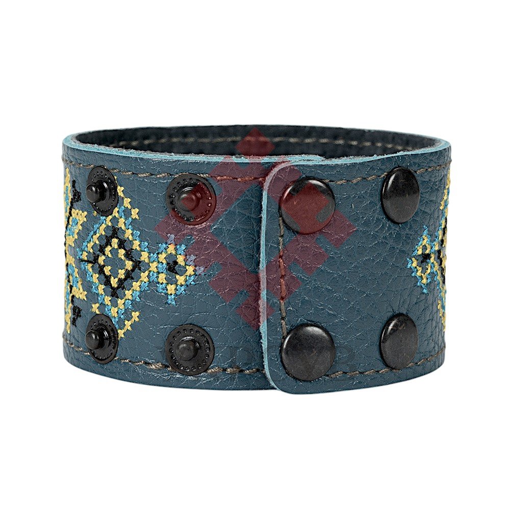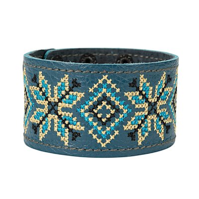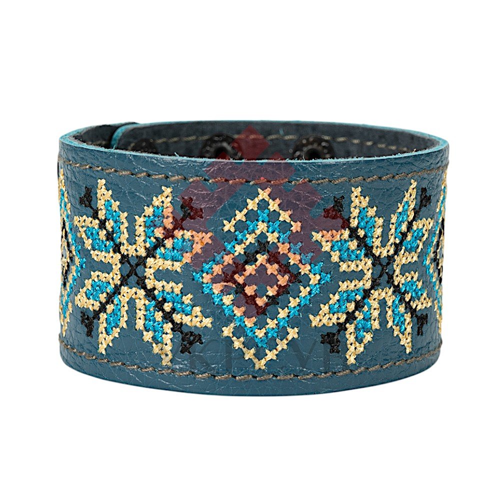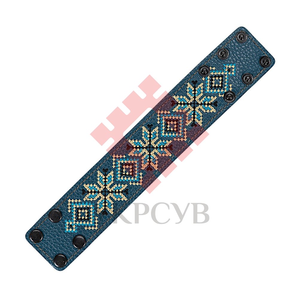 Браслет "Вишивка" (40 мм, синій, №08)Представляємо елегантний та стильний браслет "Вишивка", що поєднує в собі красу традиційних українських мотивів та сучасний дизайн. Цей аксесуар стане чудовим доповненням до вашого образу, додаючи йому унікальності та національного колориту. Браслет виготовлений з натуральної шкіри, що гарантує його високу якість, довговічність та комфортне носіння. Основа прикрашена яскравою та чіткою машинною вишивкою, виконаною з особливою увагою до деталей, що відтворює багаті орнаменти української вишивки. Кожен візерунок несе в собі глибокий символізм, роблячи браслет не просто прикрасою, а справжнім оберегом. Завдяки зручній застібці на кнопках, браслет легко одягається та надійно фіксується на зап'ясті. Ми подбали про те, щоб ви могли підібрати ідеальний розмір: браслет має кілька положень для регулювання обхвату. Цей браслет – ідеальний вибір для тих, хто цінує якість та бажає підкреслити свою індивідуальність. Він чудово поєднується як з повсякденним одягом, так і з більш вишуканим вбранням в етно-стилі. Характеристики: