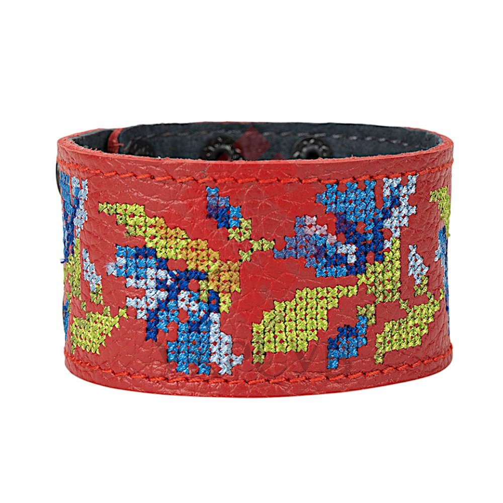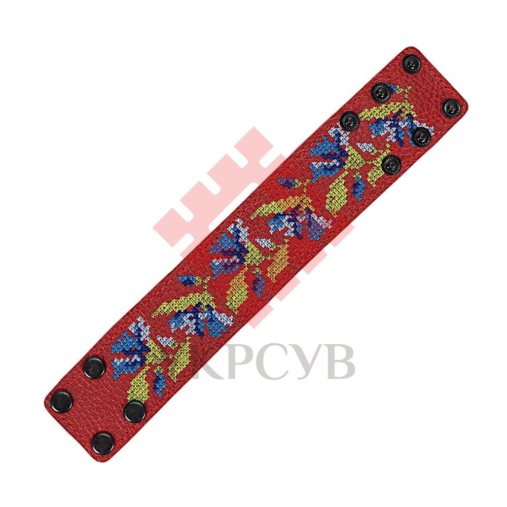 Браслет "Вишивка" (40 мм, червоний, №02)Представляємо елегантний та стильний браслет "Вишивка", що поєднує в собі красу традиційних українських мотивів та сучасний дизайн. Цей аксесуар стане чудовим доповненням до вашого образу, додаючи йому унікальності та національного колориту. Браслет виготовлений з натуральної шкіри, що гарантує його високу якість, довговічність та комфортне носіння. Основа прикрашена яскравою та чіткою машинною вишивкою, виконаною з особливою увагою до деталей, що відтворює багаті орнаменти української вишивки. Кожен візерунок несе в собі глибокий символізм, роблячи браслет не просто прикрасою, а справжнім оберегом. Завдяки зручній застібці на кнопках, браслет легко одягається та надійно фіксується на зап'ясті. Ми подбали про те, щоб ви могли підібрати ідеальний розмір: браслет має кілька положень для регулювання обхвату. Цей браслет – ідеальний вибір для тих, хто цінує якість та бажає підкреслити свою індивідуальність. Він чудово поєднується як з повсякденним одягом, так і з більш вишуканим вбранням в етно-стилі. Характеристики: