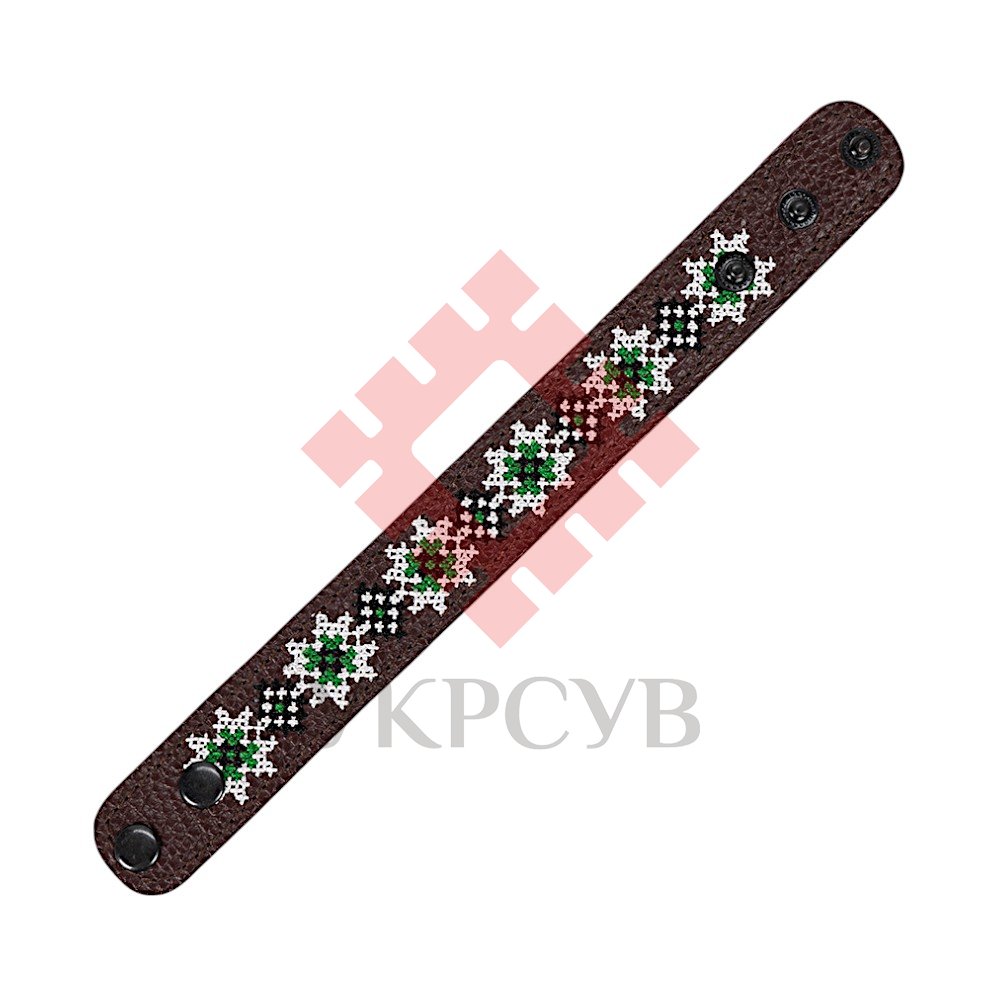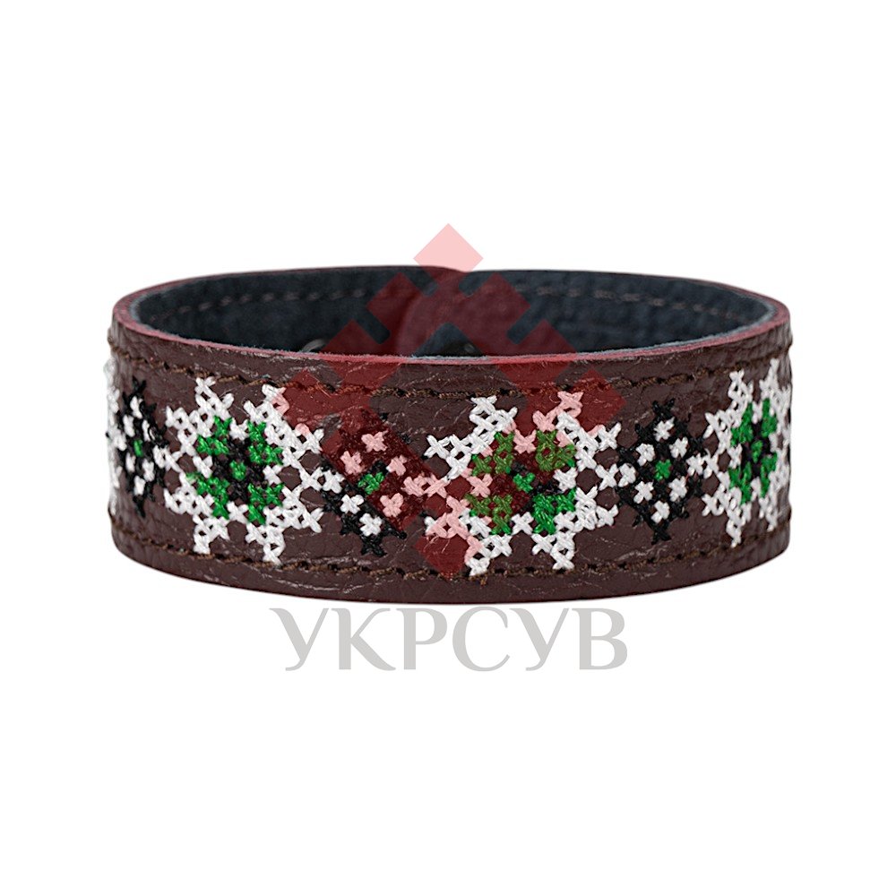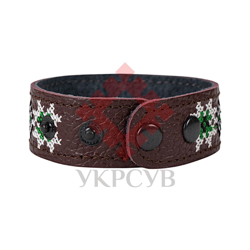 Браслет малий "Вишивка" (25 мм, бордовий, №05)Представляємо елегантний та стильний браслет "Вишивка", що поєднує в собі красу традиційних українських мотивів та сучасний дизайн. Цей аксесуар стане чудовим доповненням до вашого образу, додаючи йому унікальності та національного колориту. Браслет виготовлений з натуральної шкіри, що гарантує його високу якість, довговічність та комфортне носіння. Основа прикрашена яскравою та чіткою машинною вишивкою, виконаною з особливою увагою до деталей, що відтворює багаті орнаменти української вишивки. Кожен візерунок несе в собі глибокий символізм, роблячи браслет не просто прикрасою, а справжнім оберегом. Завдяки зручній застібці на кнопках, браслет легко одягається та надійно фіксується на зап'ясті. Ми подбали про те, щоб ви могли підібрати ідеальний розмір: браслет має кілька положень для регулювання обхвату. Цей браслет – ідеальний вибір для тих, хто цінує якість та бажає підкреслити свою індивідуальність. Він чудово поєднується як з повсякденним одягом, так і з більш вишуканим вбранням в етно-стилі. Характеристики: