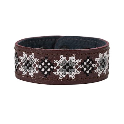 Браслет малий "Вишивка" (25 мм, бордовий, №06)Представляємо елегантний та стильний браслет "Вишивка", що поєднує в собі красу традиційних українських мотивів та сучасний дизайн. Цей аксесуар стане чудовим доповненням до вашого образу, додаючи йому унікальності та національного колориту. Браслет виготовлений з натуральної шкіри, що гарантує його високу якість, довговічність та комфортне носіння. Основа прикрашена яскравою та чіткою машинною вишивкою, виконаною з особливою увагою до деталей, що відтворює багаті орнаменти української вишивки. Кожен візерунок несе в собі глибокий символізм, роблячи браслет не просто прикрасою, а справжнім оберегом. Завдяки зручній застібці на кнопках, браслет легко одягається та надійно фіксується на зап'ясті. Ми подбали про те, щоб ви могли підібрати ідеальний розмір: браслет має кілька положень для регулювання обхвату. Цей браслет – ідеальний вибір для тих, хто цінує якість та бажає підкреслити свою індивідуальність. Він чудово поєднується як з повсякденним одягом, так і з більш вишуканим вбранням в етно-стилі. Характеристики: