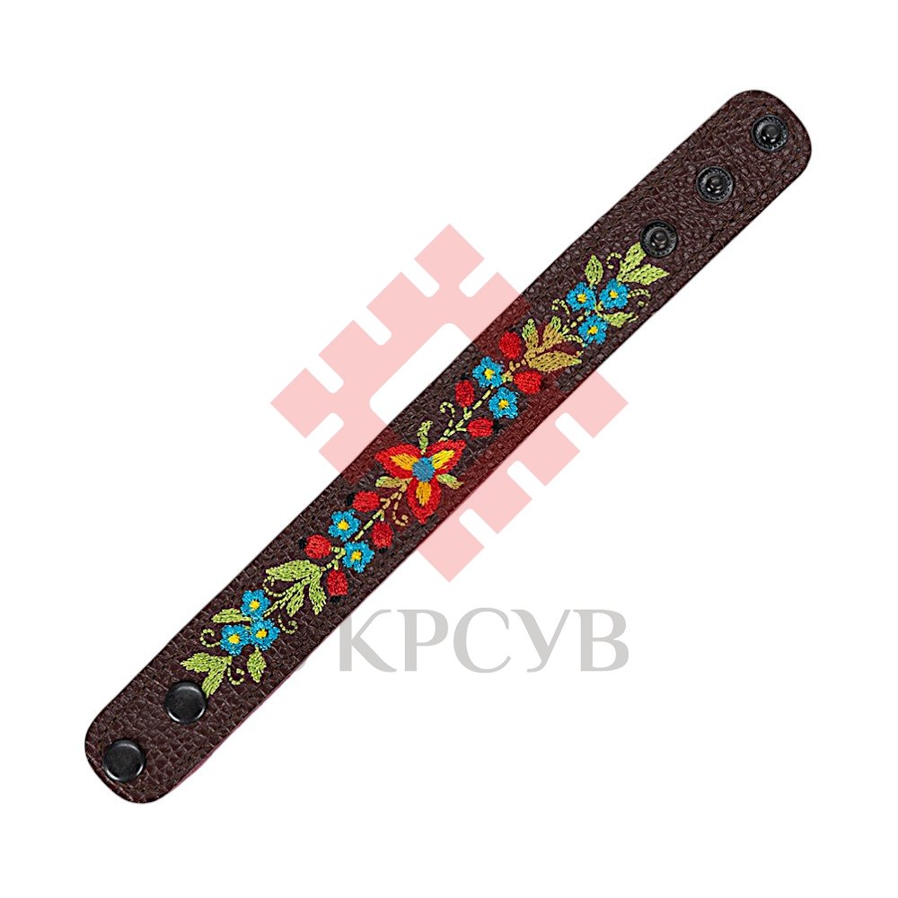 Браслет малий "Вишивка" (25 мм, бордовий, №08)Представляємо елегантний та стильний браслет "Вишивка", що поєднує в собі красу традиційних українських мотивів та сучасний дизайн. Цей аксесуар стане чудовим доповненням до вашого образу, додаючи йому унікальності та національного колориту. Браслет виготовлений з натуральної шкіри, що гарантує його високу якість, довговічність та комфортне носіння. Основа прикрашена яскравою та чіткою машинною вишивкою, виконаною з особливою увагою до деталей, що відтворює багаті орнаменти української вишивки. Кожен візерунок несе в собі глибокий символізм, роблячи браслет не просто прикрасою, а справжнім оберегом. Завдяки зручній застібці на кнопках, браслет легко одягається та надійно фіксується на зап'ясті. Ми подбали про те, щоб ви могли підібрати ідеальний розмір: браслет має кілька положень для регулювання обхвату. Цей браслет – ідеальний вибір для тих, хто цінує якість та бажає підкреслити свою індивідуальність. Він чудово поєднується як з повсякденним одягом, так і з більш вишуканим вбранням в етно-стилі. Характеристики: