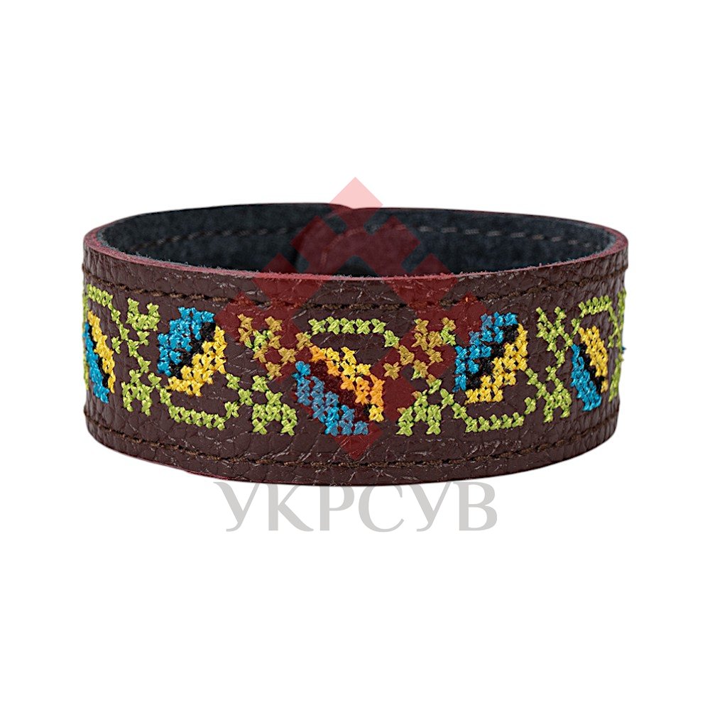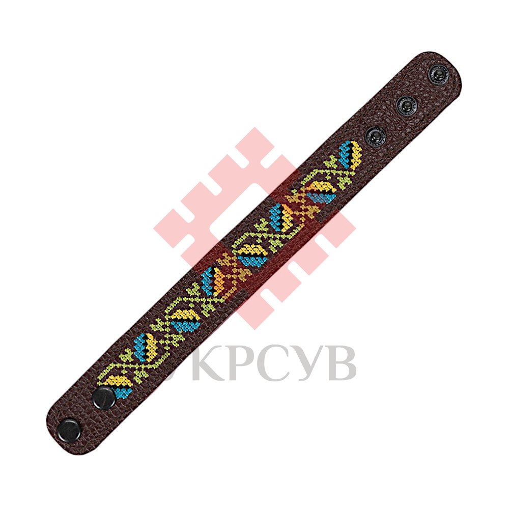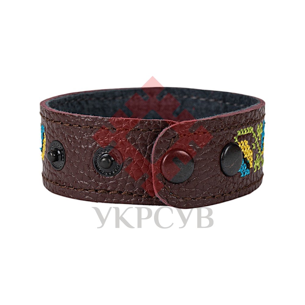 Браслет малий "Вишивка" (25 мм, бордовий, №10)Представляємо елегантний та стильний браслет "Вишивка", що поєднує в собі красу традиційних українських мотивів та сучасний дизайн. Цей аксесуар стане чудовим доповненням до вашого образу, додаючи йому унікальності та національного колориту. Браслет виготовлений з натуральної шкіри, що гарантує його високу якість, довговічність та комфортне носіння. Основа прикрашена яскравою та чіткою машинною вишивкою, виконаною з особливою увагою до деталей, що відтворює багаті орнаменти української вишивки. Кожен візерунок несе в собі глибокий символізм, роблячи браслет не просто прикрасою, а справжнім оберегом. Завдяки зручній застібці на кнопках, браслет легко одягається та надійно фіксується на зап'ясті. Ми подбали про те, щоб ви могли підібрати ідеальний розмір: браслет має кілька положень для регулювання обхвату. Цей браслет – ідеальний вибір для тих, хто цінує якість та бажає підкреслити свою індивідуальність. Він чудово поєднується як з повсякденним одягом, так і з більш вишуканим вбранням в етно-стилі. Характеристики: