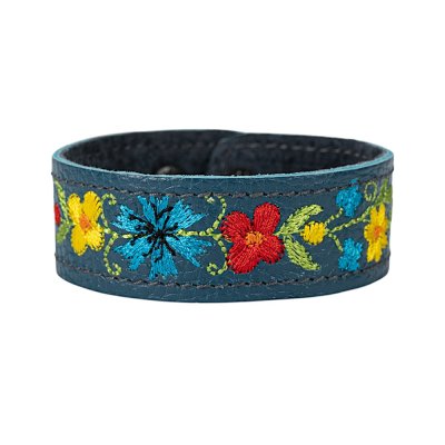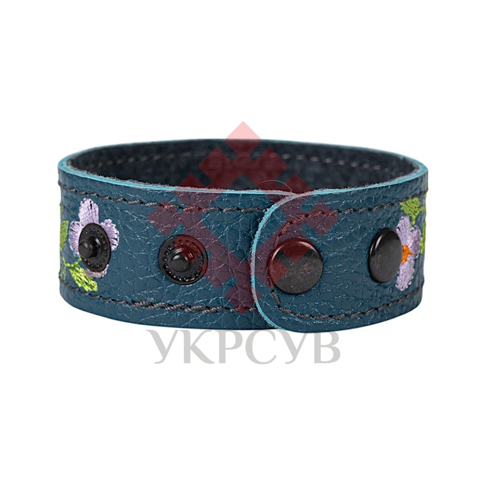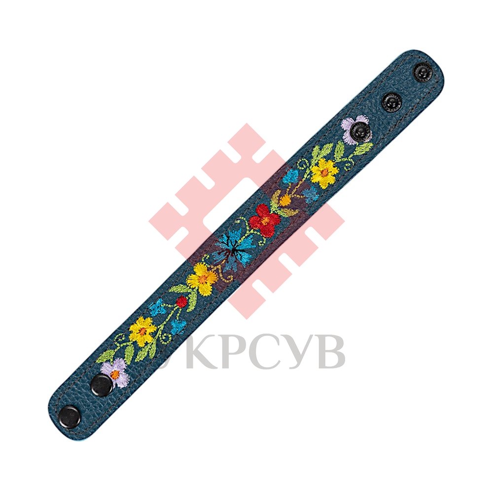 Браслет малий "Вишивка" (25 мм, синій, №07)Представляємо елегантний та стильний браслет "Вишивка", що поєднує в собі красу традиційних українських мотивів та сучасний дизайн. Цей аксесуар стане чудовим доповненням до вашого образу, додаючи йому унікальності та національного колориту. Браслет виготовлений з натуральної шкіри, що гарантує його високу якість, довговічність та комфортне носіння. Основа прикрашена яскравою та чіткою машинною вишивкою, виконаною з особливою увагою до деталей, що відтворює багаті орнаменти української вишивки. Кожен візерунок несе в собі глибокий символізм, роблячи браслет не просто прикрасою, а справжнім оберегом. Завдяки зручній застібці на кнопках, браслет легко одягається та надійно фіксується на зап'ясті. Ми подбали про те, щоб ви могли підібрати ідеальний розмір: браслет має кілька положень для регулювання обхвату. Цей браслет – ідеальний вибір для тих, хто цінує якість та бажає підкреслити свою індивідуальність. Він чудово поєднується як з повсякденним одягом, так і з більш вишуканим вбранням в етно-стилі. Характеристики: