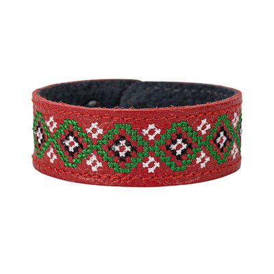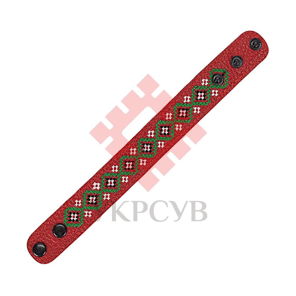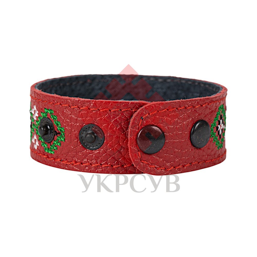 Браслет малий "Вишивка" (25 мм, червоний, №03)Представляємо елегантний та стильний браслет "Вишивка", що поєднує в собі красу традиційних українських мотивів та сучасний дизайн. Цей аксесуар стане чудовим доповненням до вашого образу, додаючи йому унікальності та національного колориту. Браслет виготовлений з натуральної шкіри, що гарантує його високу якість, довговічність та комфортне носіння. Основа прикрашена яскравою та чіткою машинною вишивкою, виконаною з особливою увагою до деталей, що відтворює багаті орнаменти української вишивки. Кожен візерунок несе в собі глибокий символізм, роблячи браслет не просто прикрасою, а справжнім оберегом. Завдяки зручній застібці на кнопках, браслет легко одягається та надійно фіксується на зап'ясті. Ми подбали про те, щоб ви могли підібрати ідеальний розмір: браслет має кілька положень для регулювання обхвату. Цей браслет – ідеальний вибір для тих, хто цінує якість та бажає підкреслити свою індивідуальність. Він чудово поєднується як з повсякденним одягом, так і з більш вишуканим вбранням в етно-стилі. Характеристики: