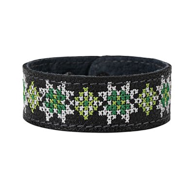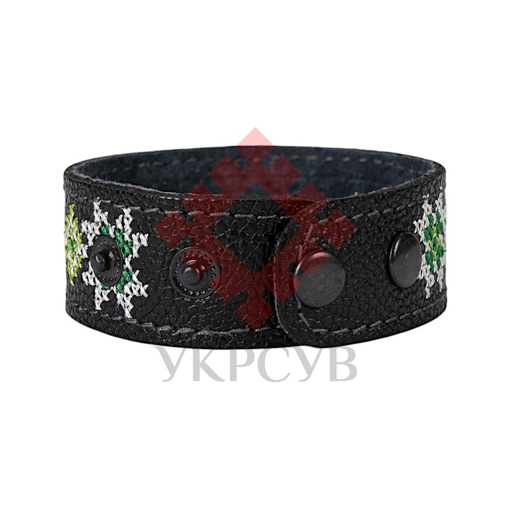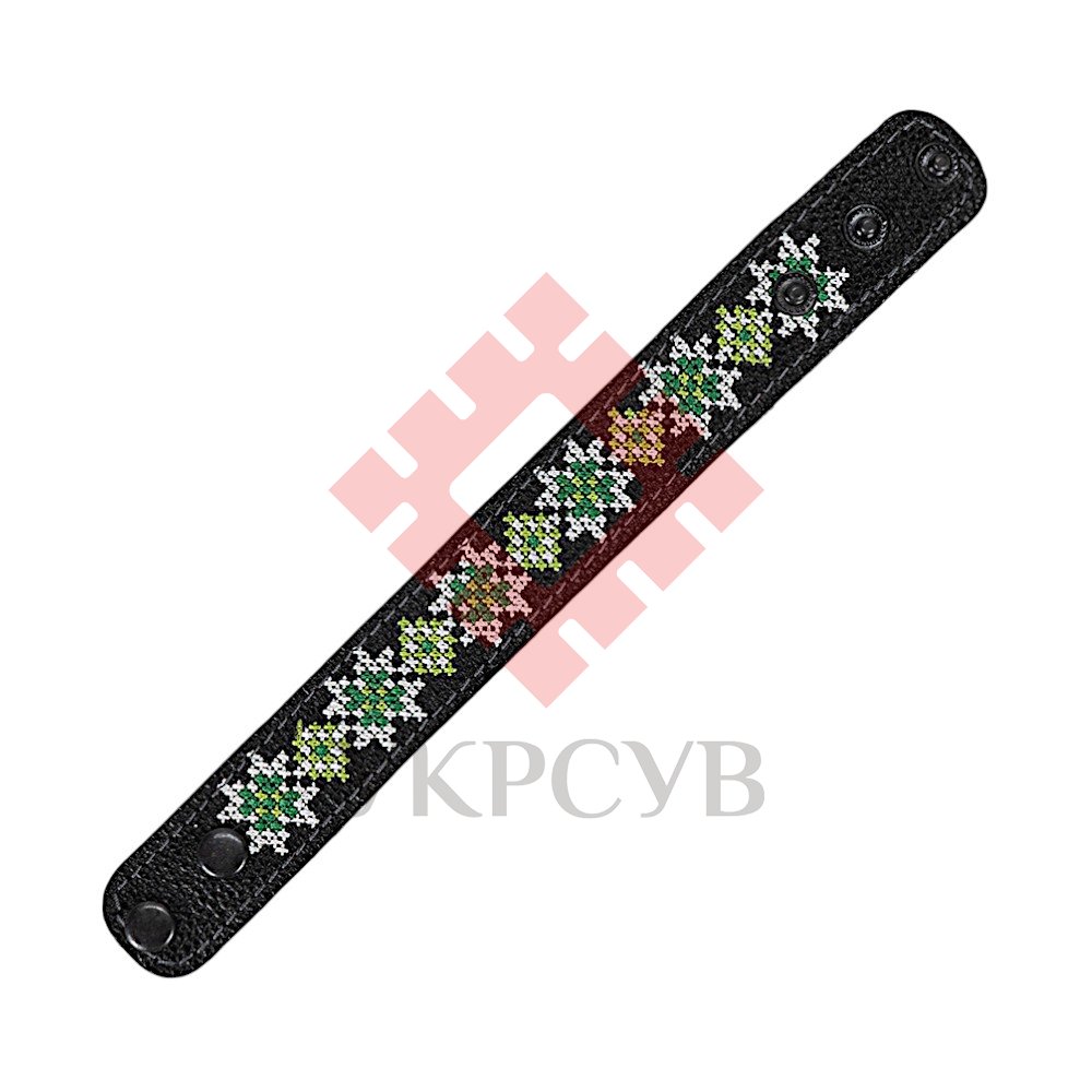 Браслет малий "Вишивка" (25 мм, чорний, №06)Представляємо елегантний та стильний браслет "Вишивка", що поєднує в собі красу традиційних українських мотивів та сучасний дизайн. Цей аксесуар стане чудовим доповненням до вашого образу, додаючи йому унікальності та національного колориту. Браслет виготовлений з натуральної шкіри, що гарантує його високу якість, довговічність та комфортне носіння. Основа прикрашена яскравою та чіткою машинною вишивкою, виконаною з особливою увагою до деталей, що відтворює багаті орнаменти української вишивки. Кожен візерунок несе в собі глибокий символізм, роблячи браслет не просто прикрасою, а справжнім оберегом. Завдяки зручній застібці на кнопках, браслет легко одягається та надійно фіксується на зап'ясті. Ми подбали про те, щоб ви могли підібрати ідеальний розмір: браслет має кілька положень для регулювання обхвату. Цей браслет – ідеальний вибір для тих, хто цінує якість та бажає підкреслити свою індивідуальність. Він чудово поєднується як з повсякденним одягом, так і з більш вишуканим вбранням в етно-стилі. Характеристики: