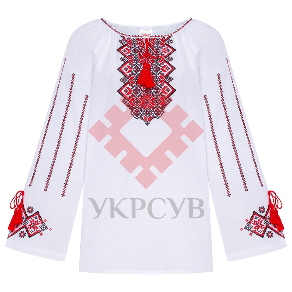 Вишиванка жіноча "Колос - Гармонія"Відчуйте справжню красу українських традицій з жіночою вишиванкою "Гармонія". Ця елегантна модель стане яскравим акцентом у вашому гардеробі, поєднуючи в собі автентичність та сучасний стиль. Вишиванка виконана на білосніжній тканині, що є ідеальною основою для виразної **машинної вишивки**. Орнаменти, що прикрашають Гармонію, виконані у класичних червоно-чорних кольорах, які несуть у собі глибоку символіку та енергетику. Центральна частина вишиванки, а також широкі рукави-реглан, декоровані складними геометричними візерунками та ромбами, що надають виробу особливої витонченості. Особливістю моделі є розширені рукави, що закінчуються вишитими манжетами та прикрашені червоними китицями, які можна зав'язувати, додаючи оригінальності та завершеності образу. Горловина також оздоблена вишуканими червоними китицями, що підкреслюють національний колорит. Гармонія ідеально підходить як для урочистих подій та свят, так і для повсякденного носіння, додаючи вашому образу неповторного українського шарму. Вона дарує відчуття комфорту та дозволяє висловити свою індивідуальність через вікові традиції. |