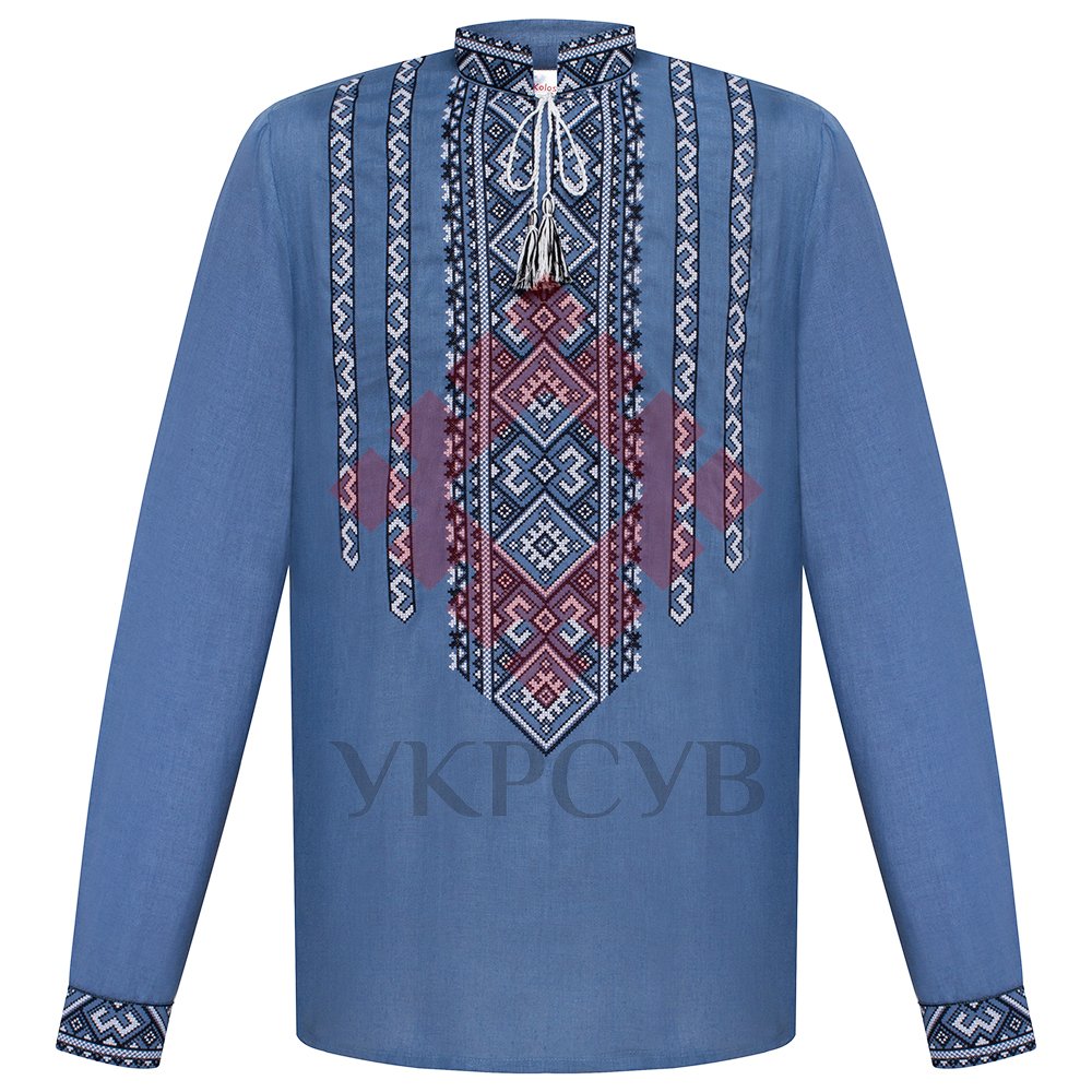 Вишиванка чоловіча "Колос - Код предків"Відкрийте для себе глибину українських традицій з чоловічою вишиванкою "Код предків". Ця модель є втіленням мудрості поколінь, вираженої у витончених символах української вишивки. Вишиванка виконана у благородному синьому кольорі, що надає їй особливої глибини та елегантності. Головною окрасою Коду предків є вишукана **машинна вишивка** у відтінках чорного, білого та сірого, що створює контрастний та виразний орнамент. Складні геометричні візерунки, що нагадують стародавні обереги та символи роду, майстерно розташовані на грудях, комірі-стійці та вздовж усієї довжини рукавів, підкреслюючи унікальність виробу. Модель має класичний комір-стійку та розріз на грудях, оздоблений витонченими китицями у відповідних кольорах вишивки, що довершують образ. Прямий крій та якісна тканина забезпечують максимальний комфорт під час носіння, дозволяючи почуватися вільно та впевнено. Код предків ідеально підійде для урочистих подій, національних свят, ділових зустрічей або просто для того, щоб висловити свою повагу до української спадщини та її символічних мотивів у повсякденному житті.