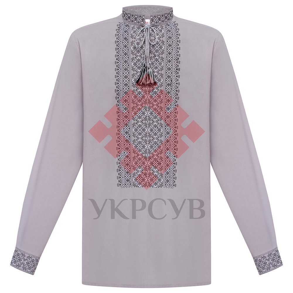 Вишиванка чоловіча "Колос - Витонченість"Відчуйте справжню елегантність та стриманий стиль з чоловічою вишиванкою "Витонченість". Ця модель є втіленням сучасної класики, що ідеально підкреслить ваш вишуканий смак та повагу до українських традицій. Вишиванка виконана у благородному світло-сірому або приглушеному ліловому кольорі, що надає їй універсальності та дозволяє легко комбінувати її з різними елементами гардеробу. Головною окрасою Витонченості є делікатна **машинна вишивка** у відтінках чорного, білого та сірого. Складні геометричні орнаменти, що майстерно розташовані на грудях, комірі-стійці та манжетах, створюють витончений та гармонійний візерунок. Модель має класичний комір-стійку та розріз на грудях, оздоблений витонченими китицями у відповідних кольорах вишивки, що довершують образ. Прямий крій та якісна тканина забезпечують максимальний комфорт під час носіння, дозволяючи почуватися вільно та впевнено. Витонченість ідеально підійде як для ділових зустрічей, так і для святкових подій, культурних заходів або повсякденного носіння. Вона дозволить вам виглядати стильно та з гордістю демонструвати свою приналежність до української культури.