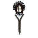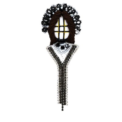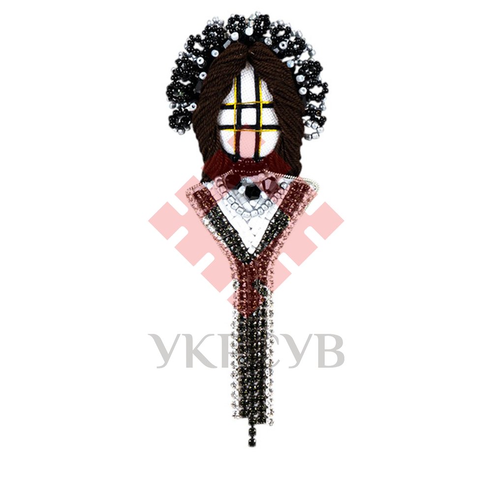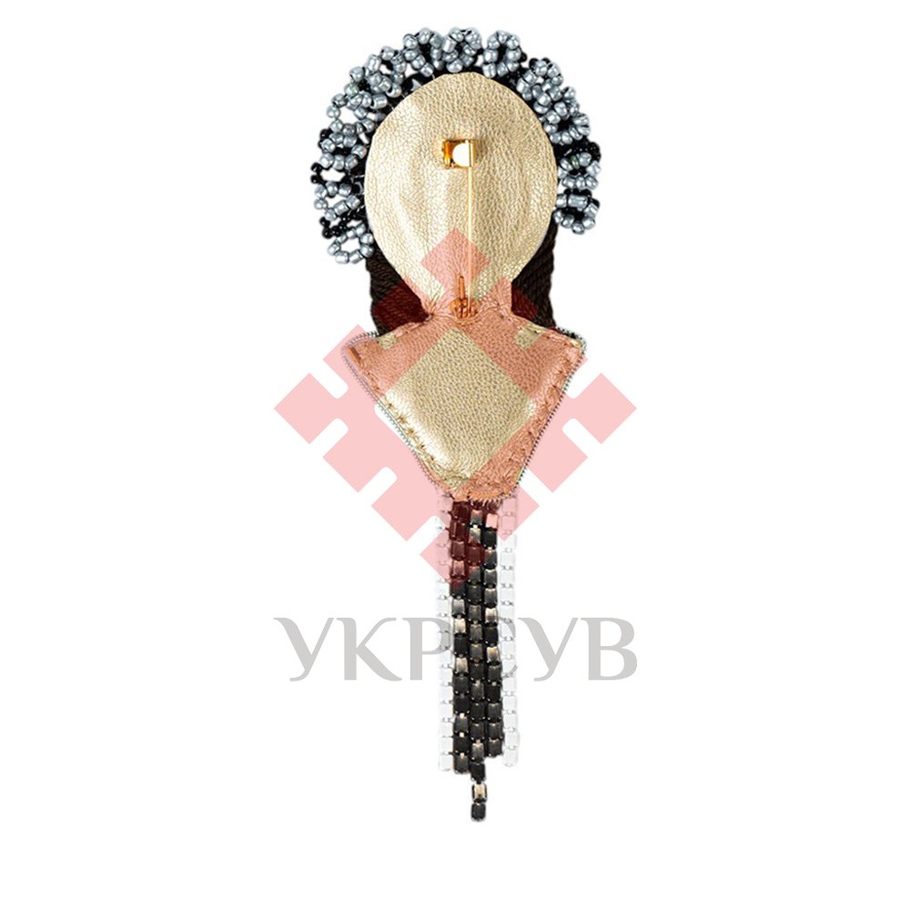 Елегантний дизайн: Брошка виконана в строгій чорно-білій кольоровій гамі з елементами сріблястого відтінку, що робить її універсальним аксесуаром для будь-якого образу. Вона прикрашена вишивкою хрестиком, що імітує народні візерунки, а також елементами з бісеру та намистин, що додають виробу елегантності та блиску.