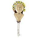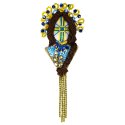 Брошка-мотанка "Жовто-блакитна, з косичкою"Стильна брошка-мотанка у національних кольорах — це поєднання українських традицій і сучасного дизайну. Її обличчя прикрашене хрестом у жовто-блакитних відтінках, що символізують гармонію, силу духу та любов до рідної землі. Виріб оздоблений бісером, кристалами та нитками, сплетеними в акуратну косу, яка додає образу жіночності та ніжності. Така прикраса стане чудовим оберегом або патріотичним аксесуаром, який гармонійно доповнить будь-який образ.