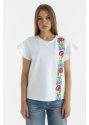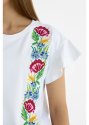 Така футболка стане стильним колоритним доповненням Вашого гардеробу. Яскрава вишивка квіткових візерунків виконана у техніці "хрестик".