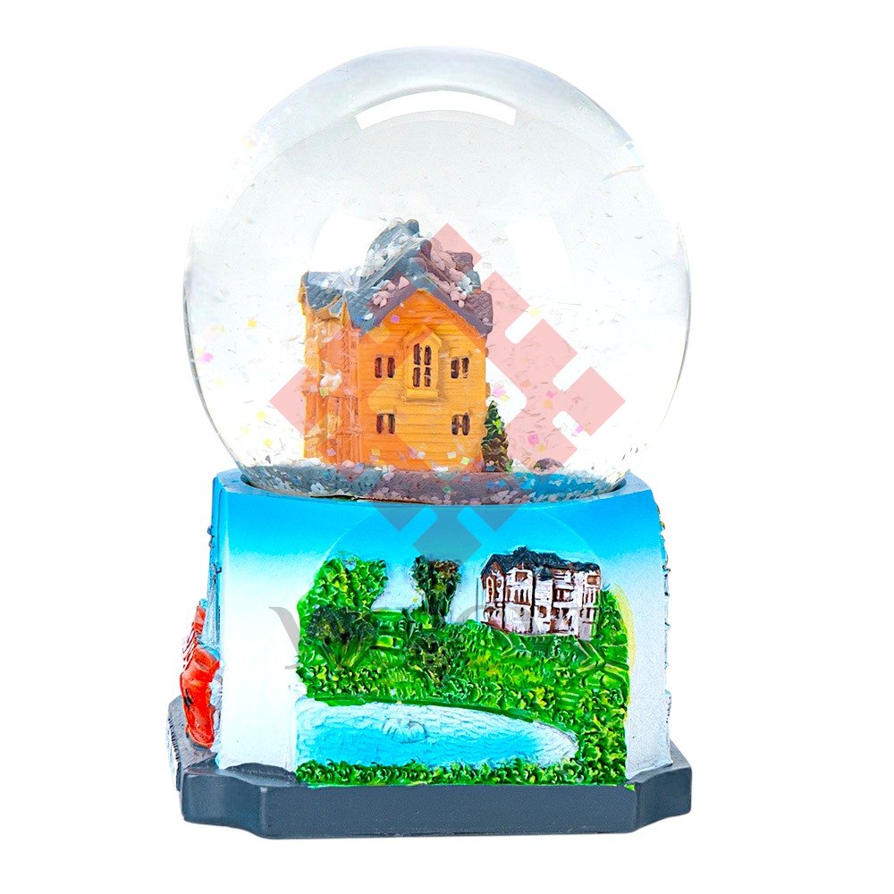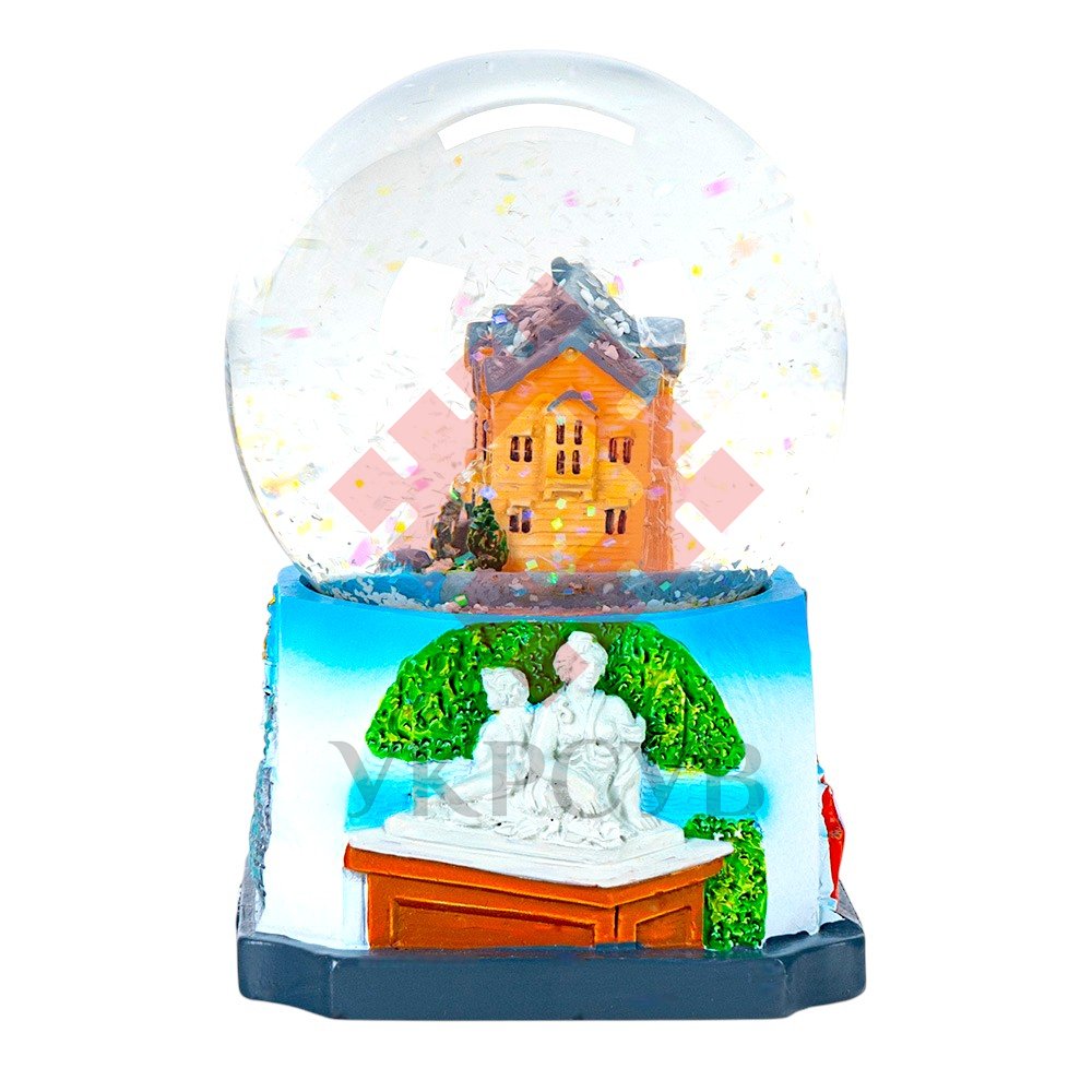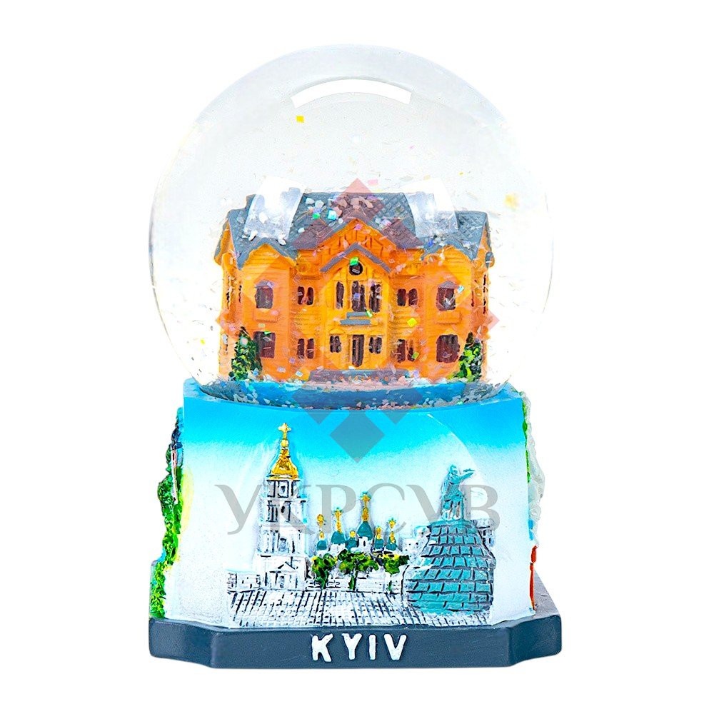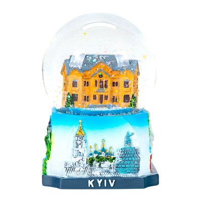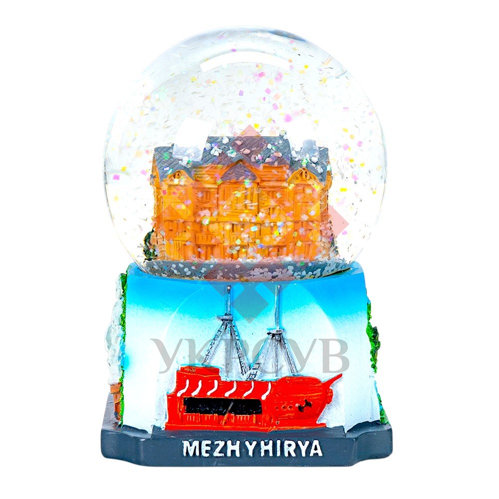 Снігова куля "Київ – Межигір'я"Снігова куля із зображенням Межигір’я переносить у атмосферу затишку та краси величного парку під Києвом. Усередині кулі — мініатюра відомого дерев’яного будинку, який став одним із найпізнаваніших символів цієї локації. Легкий снігопад створює казкову, майже святкову атмосферу. Основу прикрашають барвисті рельєфні елементи: набережна, зелений парк, знаменитий корабель-ресторан, а також фонтан і скульптури — все, що формує характерний образ Межигір’я. Деталі промальовані акуратно, з яскравими кольорами та контрастними акцентами.