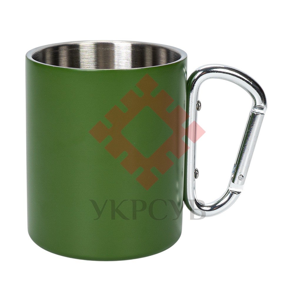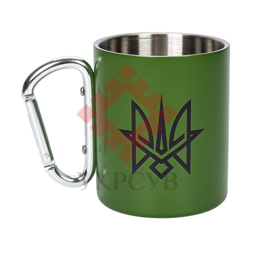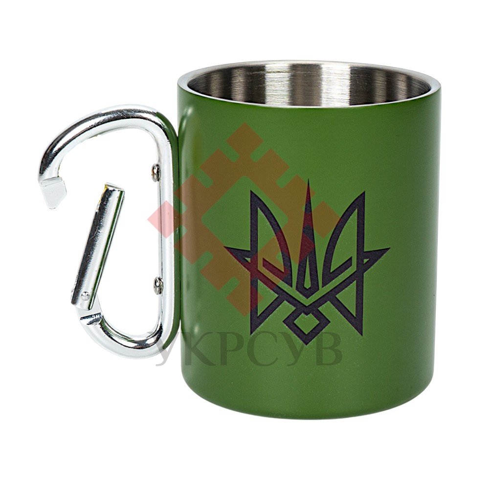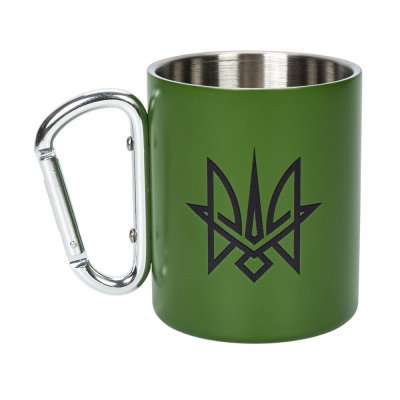 Чашка Тризуб зелений, металева з подвійними стінками та карабіном, 300 мл (39058)