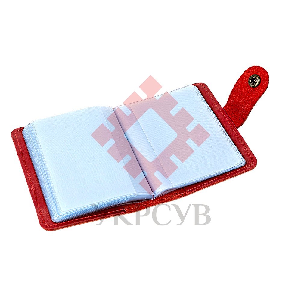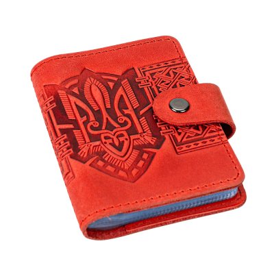 Візитниця "Тризуб – геометрія", червонийЧервона шкіряна візитниця з тисненим тризубом і геометричним орнаментом створена для тих, хто любить яскраві акценти та символічні деталі. Насичений червоний відтінок робить аксесуар помітним і стильним, а натуральна шкіра забезпечує приємну фактуру та стійкість до щоденного використання. Усередині передбачено 20 прозорих файлів — оптимальний формат для зберігання візиток, банківських карток або невеликих документів. Металева кнопка надійно фіксує візитницю, запобігаючи випадковому відкриванню в сумці чи кишені. Ретельне прошиття, продумана конструкція та символічний дизайн роблять цей аксесуар чудовим вибором як для особистого користування, так і для подарунка.