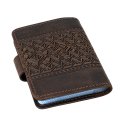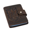 Візитниця "Тризуб – геометрія", темно-коричневийТемно-коричнева шкіряна візитниця з тисненим тризубом і геометричним орнаментом — це класичний, стриманий та водночас виразний аксесуар. Натуральна шкіра має глибокий благородний відтінок, приємну фактуру й чудово зберігає форму під час щоденного використання. Виріб оснащений 20 прозорими файлами, які ідеально підходять для зберігання візиток, банківських карток чи невеликих документів. Металева кнопка забезпечує надійне та щільне закриття, не дозволяючи візитниці випадково розкриватися. Якісне прошиття, охайні краї та продумане розміщення елементів роблять цей аксесуар практичним, довговічним і стильним вибором для щоденного використання або як презента.
