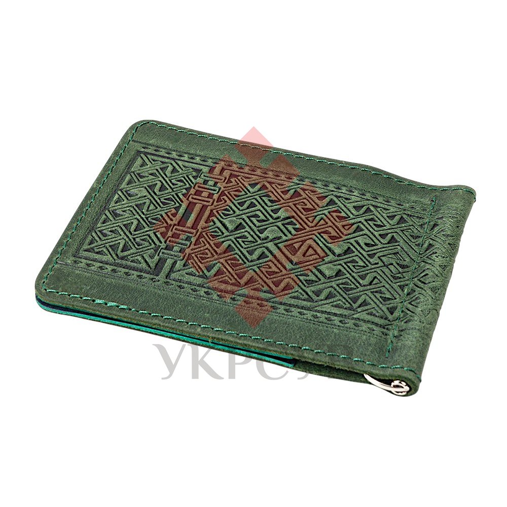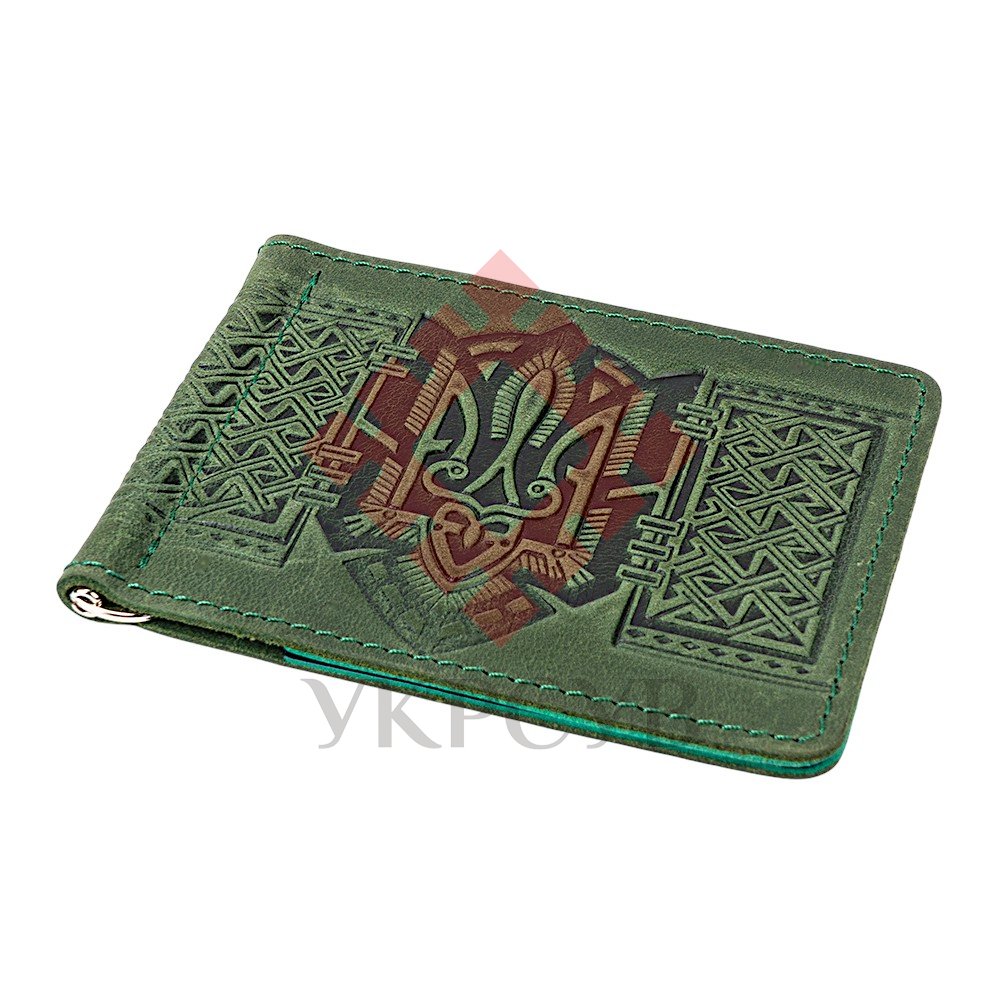 Зажим для грошей "Тризуб - геометрія", зелений (29673)